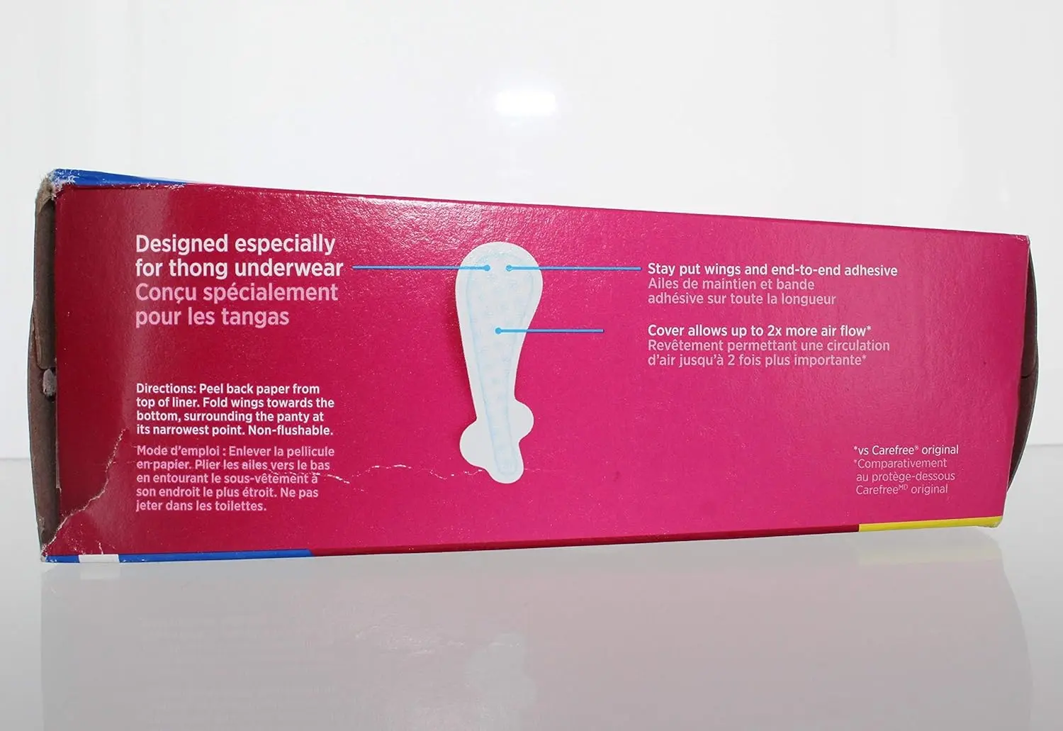 Experience carefree confidence every day with Carefree Thong Pantiliners. Designed specifically for thong underwear, these pantiliners offer a discreet and comfortable way to stay feeling fresh and clean. The thin and flexible design moves with you, adapting to your body for all-day comfort. Carefree Thong Pantiliners provide reliable protection against daily discharge, light leaks, and unexpected surprises, keeping you feeling confident and ready for anything. The lightly scented option provides a subtle burst of freshness. This 4-pack ensures you’re always prepared.