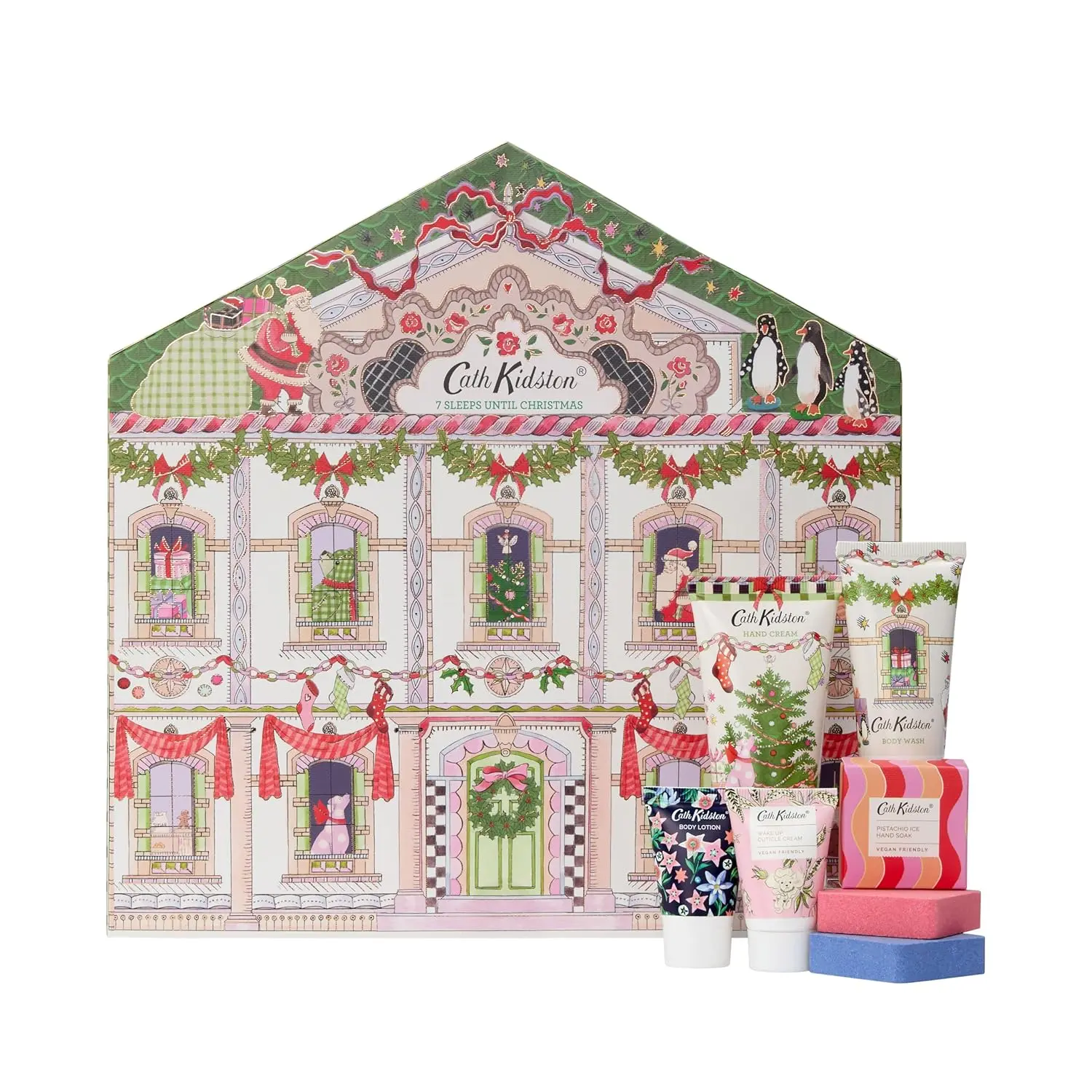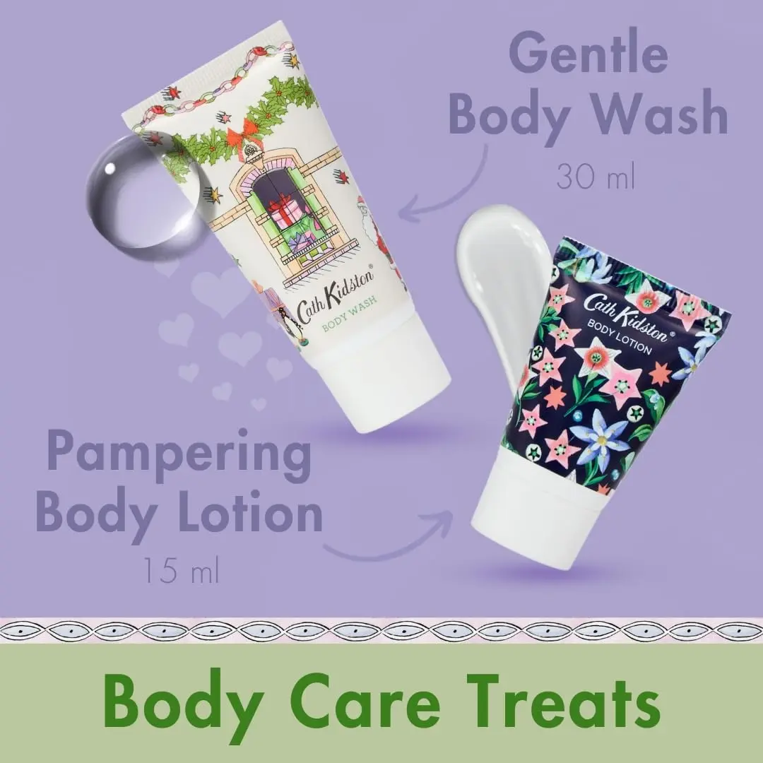 Spread holiday cheer with the Cath Kidston Doll’s House Bath & Body Gift Set! This delightful collection is designed to bring joy and pampering to your loved ones a week before Christmas. Inside this beautifully illustrated doll’s house, you’ll discover seven decadent bath and body treats.
