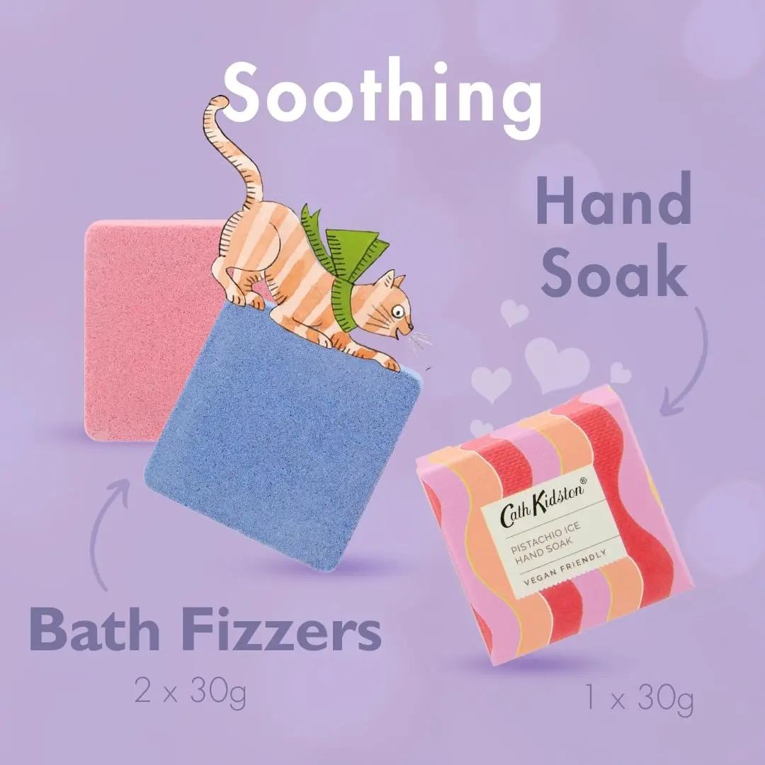 This set also includes a gentle Red Berry & Cedar Body Wash with pro-vitamin B5 to cleanse and revitalize the skin. Create a festive and fragrant bath with two effervescent festive bath fizzers. Finally, immerse your hands in the deliciously scented Pistachio Ice Hand Soak, a treat for the senses.