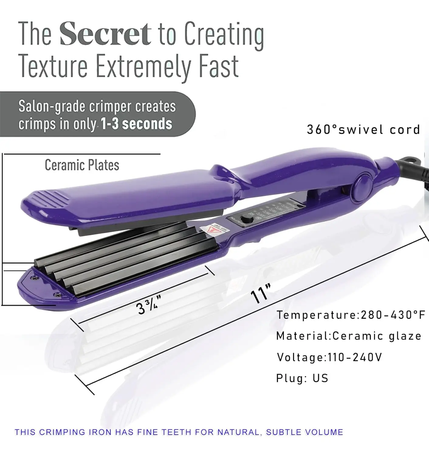 Create voluminous, frizz-free styles with our Ceramic Crimper Iron. Features 5 heat settings, fast heat-up, & ergonomic design for all hair types. Perfect for beginners!