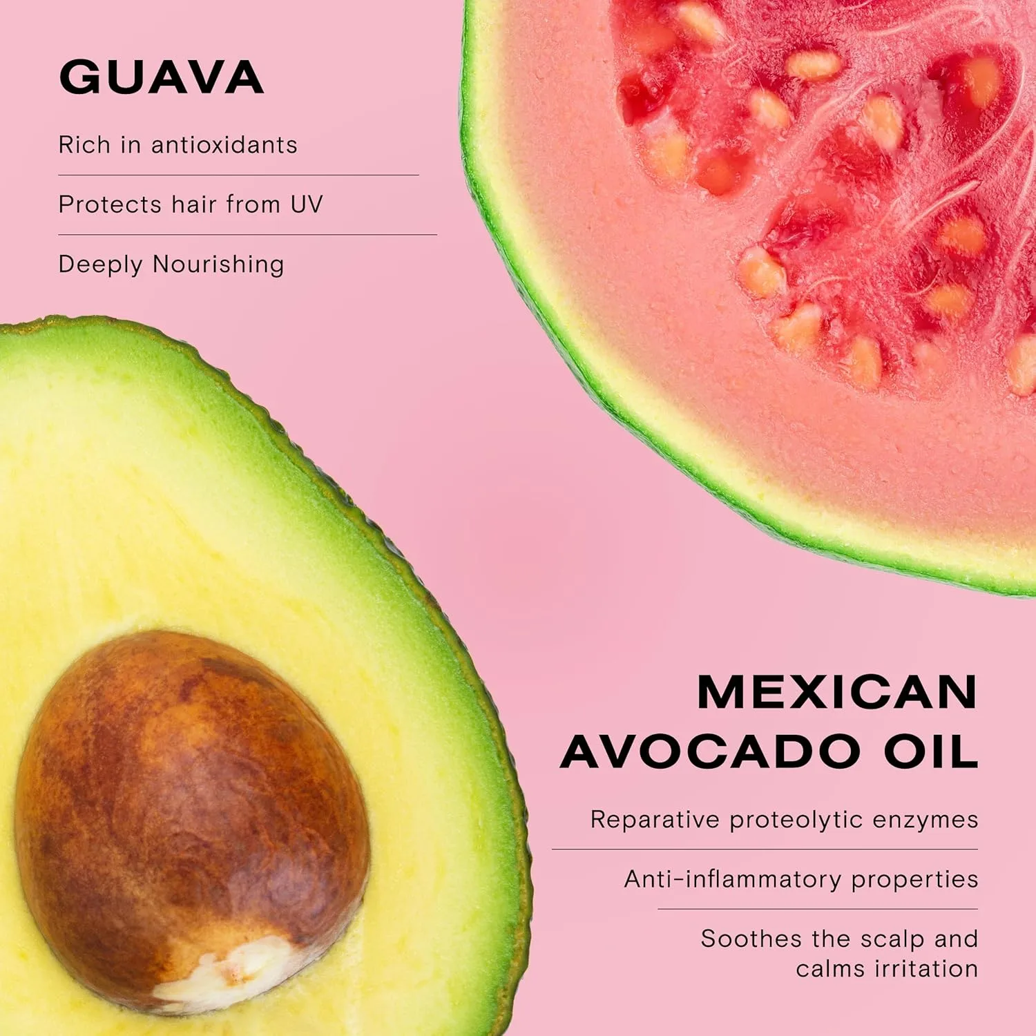 Protect your hair from environmental stressors. This spray is powered by the natural goodness of superfruit guava, which provides natural UV protection, shielding your hair from the sun’s harmful rays. It also acts as a heat protectant, defending your hair from temperatures up to 450F, when using styling tools. Furthermore, butterfly ginger and avocado combine to guard against the damaging effects of blue light and pollution, ensuring your hair remains healthy and vibrant.