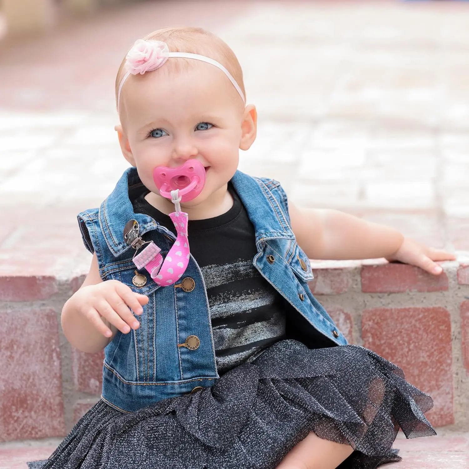 • Lightweight clip keeps pacifier clean and close to baby