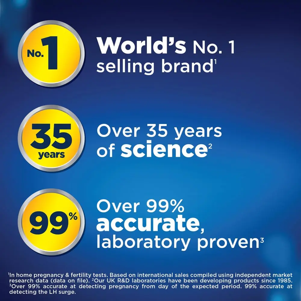 Maximize your chances of conceiving with the Clearblue Digital Ovulation Test Kit! This at-home urine test accurately pinpoints your two most fertile days, giving you a significant advantage in your journey to pregnancy. With 20 test sticks included, you have a higher chance of detecting your luteinizing hormone (LH) surge, even if your cycle length varies or is unknown. Clearblue’s advanced technology offers over 99% accuracy in detecting the LH surge, which is a more reliable predictor of ovulation than basal body temperature (BBT). BBT only rises after ovulation has already occurred. The easy-to-read digital display provides a clear result – a unique ‘smiley face’ appears when the LH surge is detected, indicating the optimal time for conception. Once the smiley face appears, engage in intercourse anytime within the next 48 hours to maximize your chances of becoming pregnant. Clearblue is the No. 1 UK Doctor recommended brand in a survey of doctors in the UK (data on file). With over 30 years of experience providing pregnancy tests, ovulation kits, and fertility tests for women, Clearblue is a trusted name in reproductive health. This kit includes 1 Digital Holder and 20 Clearblue Digital Ovulation Test Sticks. Need assistance? Our dedicated Personal Advisors are available to answer your questions from 07:00 to 15:00 hrs, Monday to Friday (excluding Bank Holidays). Take control of your fertility journey with the Clearblue Digital Ovulation Test Kit.
