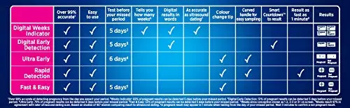 Experience unparalleled speed and accuracy with the Clearblue Rapid Pregnancy Test. Get your results in as fast as 1 minute! If testing from the day you expect your period, Clearblue is over 99% accurate in detecting pregnancy. The user-friendly design provides clear and easily interpretable plus (+) or minus (-) results, eliminating any guesswork. This award-winning pregnancy test is designed for ease of use, ensuring a stress-free experience during a potentially anxious time. Trust Clearblue for reliable and fast results when you need them most. Enjoy the confidence of knowing sooner, thanks to Clearblue’s innovative technology. With its rapid detection and exceptional accuracy, this test provides peace of mind and reliable answers in the comfort of your own home. Don’t wait, get the answers you need quickly and confidently with Clearblue. This test is your trusted partner on your journey to motherhood. Its simple design and clear results eliminate confusion and offer reassurance when you need it most. Feel secure in knowing your result is more than 99% accurate when testing from the day of your expected period. The Clearblue Rapid Detection Pregnancy Test is the reliable and fast choice for women who want answers quickly.