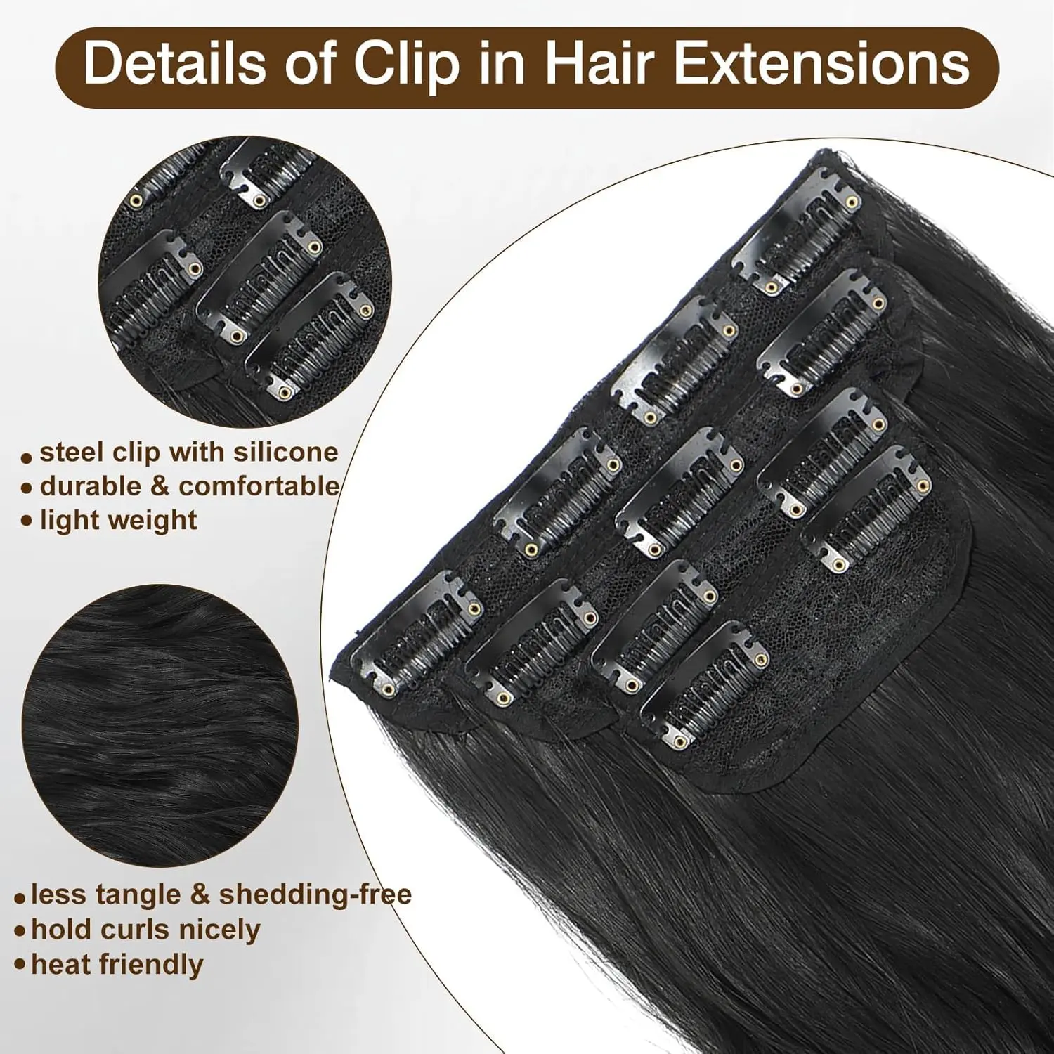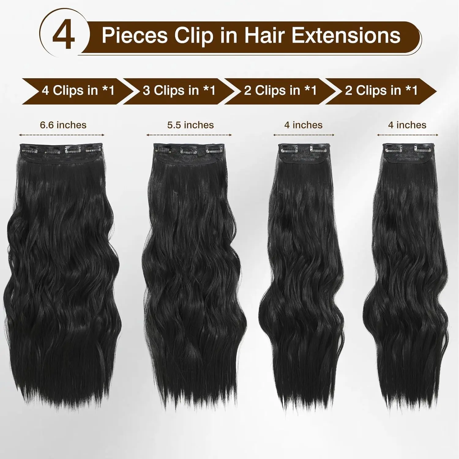 Please note that slight color variations may occur due to factors such as lighting, weather conditions, and monitor resolution. If your hair is short and thin, these 4-piece clip-in extensions are the fastest way to achieve a full and long hairstyle. Due to packaging and transportation, the extensions may arrive slightly bent. Simply use a hair straightener to smooth them out. We appreciate your trust and support.