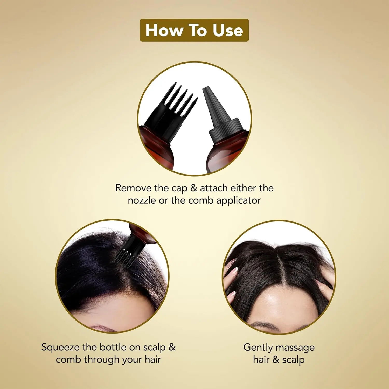 Enjoy a hassle-free application with our included nozzle and comb applicator. These tools allow you to evenly distribute the oil throughout your hair and scalp, reaching every strand with ease. The comb also helps to smoothen knots and frizzes, making the application process effortless and enjoyable.
