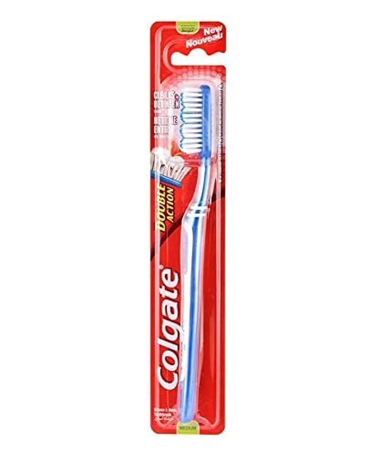 Achieve a cleaner, healthier mouth with the Colgate Double Action Medium Toothbrush. This manual toothbrush is designed with dual-action cleaning power to effectively remove plaque and food particles from tooth surfaces and between teeth. The medium bristles provide a comfortable yet thorough cleaning experience, while the toothbrush’s ergonomic handle ensures a secure grip for optimal control. The Colgate Double Action toothbrush is a simple and effective way to maintain good oral hygiene, contributing to a brighter smile and fresher breath. Its specifically designed to improve you’re overall oral care, the product allows you to properly reach the back teeth. Its design allows for the best oral hygiene care from plaque removal to teeth cleaning. Colors may vary. Choosing the right toothbrush is essential for maintaining optimal oral hygiene. The Colgate Double Action Medium Toothbrush offers a balance of effective cleaning and gentle care for your gums and teeth. Regular brushing with this toothbrush helps remove plaque, prevent cavities, and promote healthy gums. Embrace a confident smile with the Colgate Double Action Medium Toothbrush, your trusted partner in everyday oral care. Regular brushing is vital, and this toothbrush makes it easy. It fits comfortably in your hand, making brushing a breeze. It’s an easy and cost-effective way to improve your teeth’s health, and will give you a great and healthy smile to be proud of.