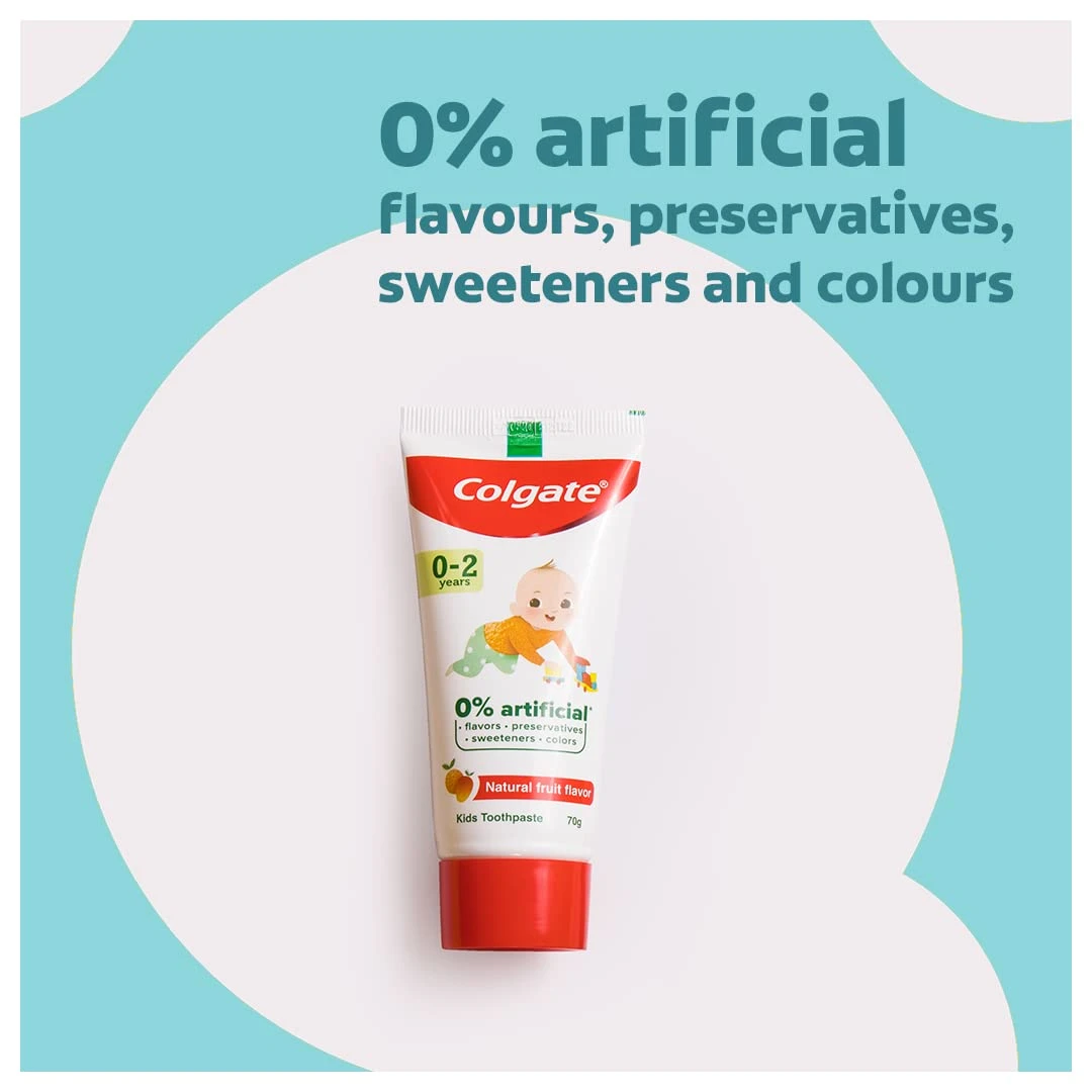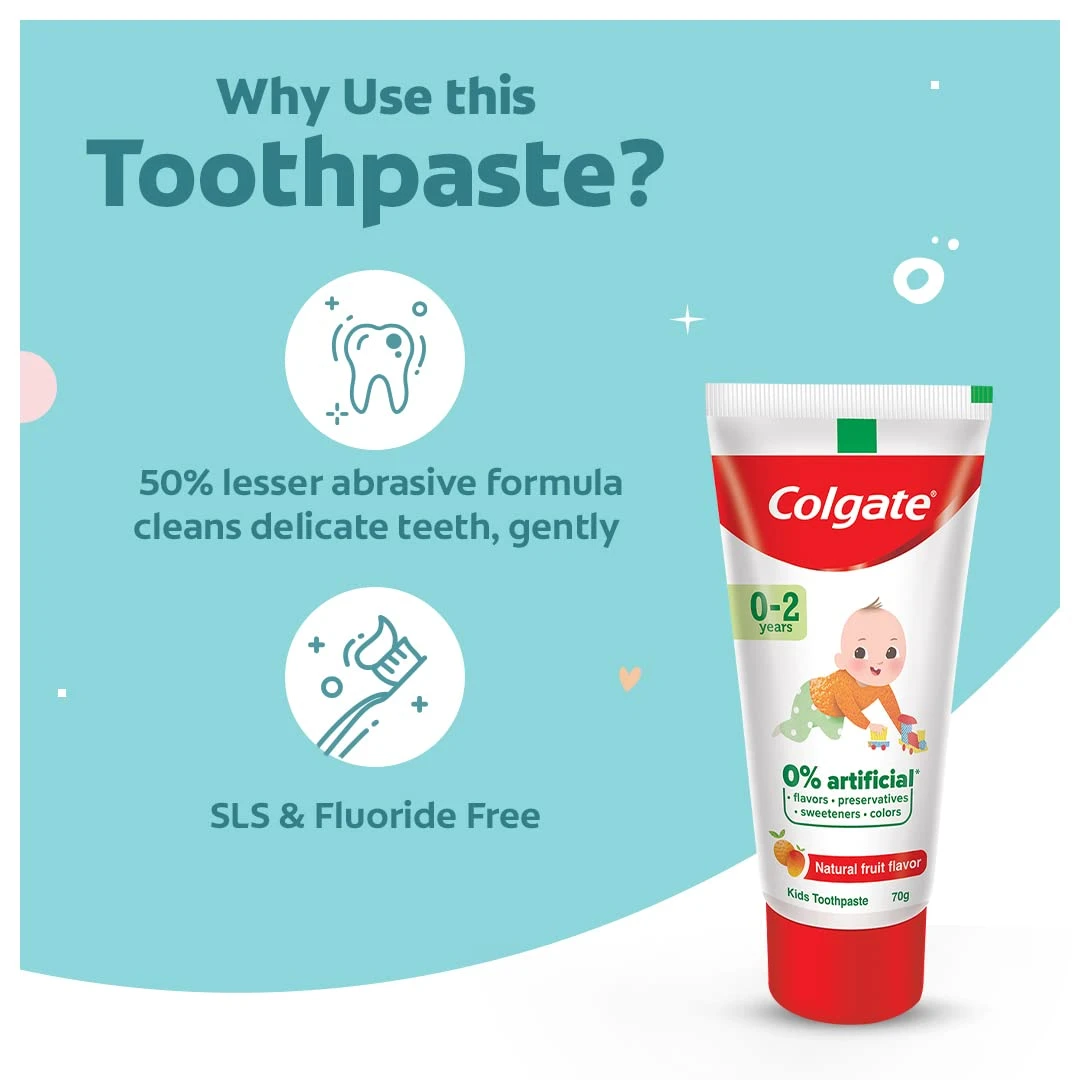Colgate Kids Fluoride-Free Toothpaste in Natural Fruit flavor is a safe and gentle option for your baby’s delicate teeth. SLS and Fluoride free, with 50% less abrasive formula.