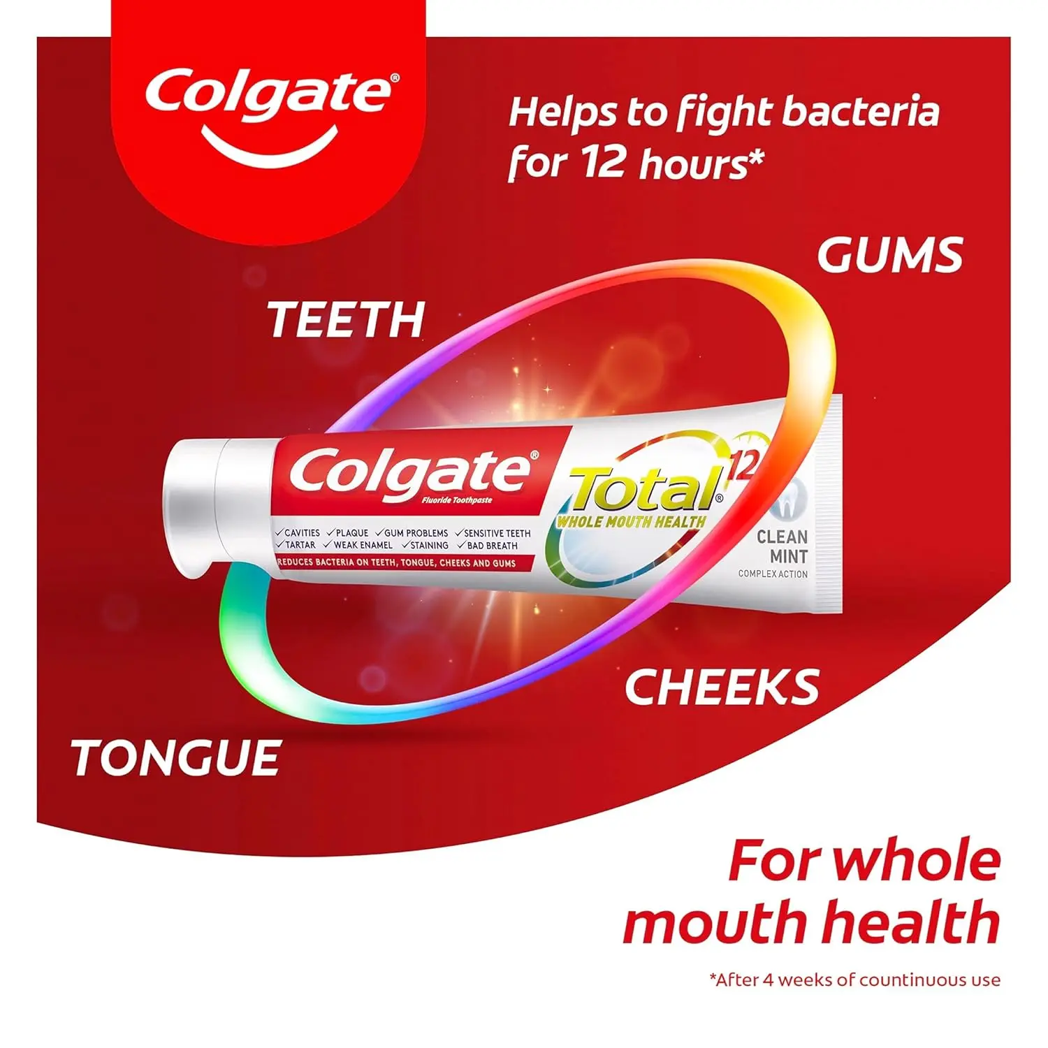 Experience a revolutionary clean with Colgate Total Clean Mint Toothpaste! This advanced formula goes beyond simply cleaning your teeth. It proactively protects your *whole* mouth, targeting bacteria not only on your teeth, but also on your tongue, cheeks, and gums. Enjoy 12 hours of continuous protection against harmful bacteria, ensuring long-lasting freshness and a healthier mouth. Colgate Total provides excellent defense against plaque, gingivitis, stains, tartar, and cavities, giving you comprehensive oral care in one tube. But that’s not all – this new and improved formula now offers even *more* benefits. It fights tooth sensitivity, providing relief from pain and discomfort. It actively seeks out and fights bacteria to strengthen and protect your enamel, preventing erosion and damage. Say goodbye to bad breath with its instant odor neutralization technology, leaving your breath feeling clean and revitalized. And with new, improved flavors, your mouth will feel incredibly fresh and clean after every brush. Colgate Total Clean Mint Toothpaste offers a complete and refreshing oral hygiene experience. Enjoy the confidence of a healthy, protected mouth with Colgate Total. Get your 2-pack today and experience the difference! Protect your entire mouth, not just your teeth, with Colgate Total Clean Mint toothpaste. With up to 12 hours of protection, fight plaque, gingivitis, stains, and cavities. Plus, enjoy new benefits like anti-sensitivity, enamel protection, and bad breath neutralization. The clean mint flavor leaves your mouth feeling refreshed. This 2-pack ensures you have a lasting supply of superior oral care. Make the switch to Colgate Total for a healthier, more confident smile. Don’t settle for less when it comes to your oral health. Choose Colgate Total, the toothpaste that does it all.