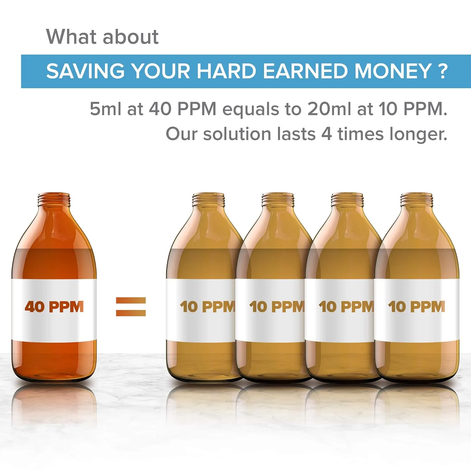 Experience the power of pure colloidal silver with our meticulously crafted 40 PPM solution. Formulated with only two ingredients: ultra-pure water and 40 ppm silver, ensuring optimal concentration and unparalleled purity. We believe in simplicity and effectiveness, that’s why you’ll find zero added substances and zero impurities in our product. The key to our colloidal silver’s effectiveness lies in the use of the smallest silver particles, because the smaller the particles, the better the results.