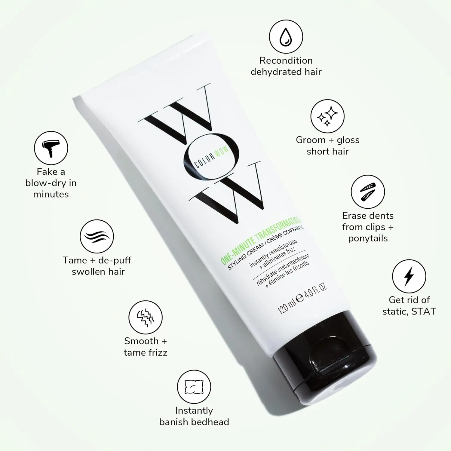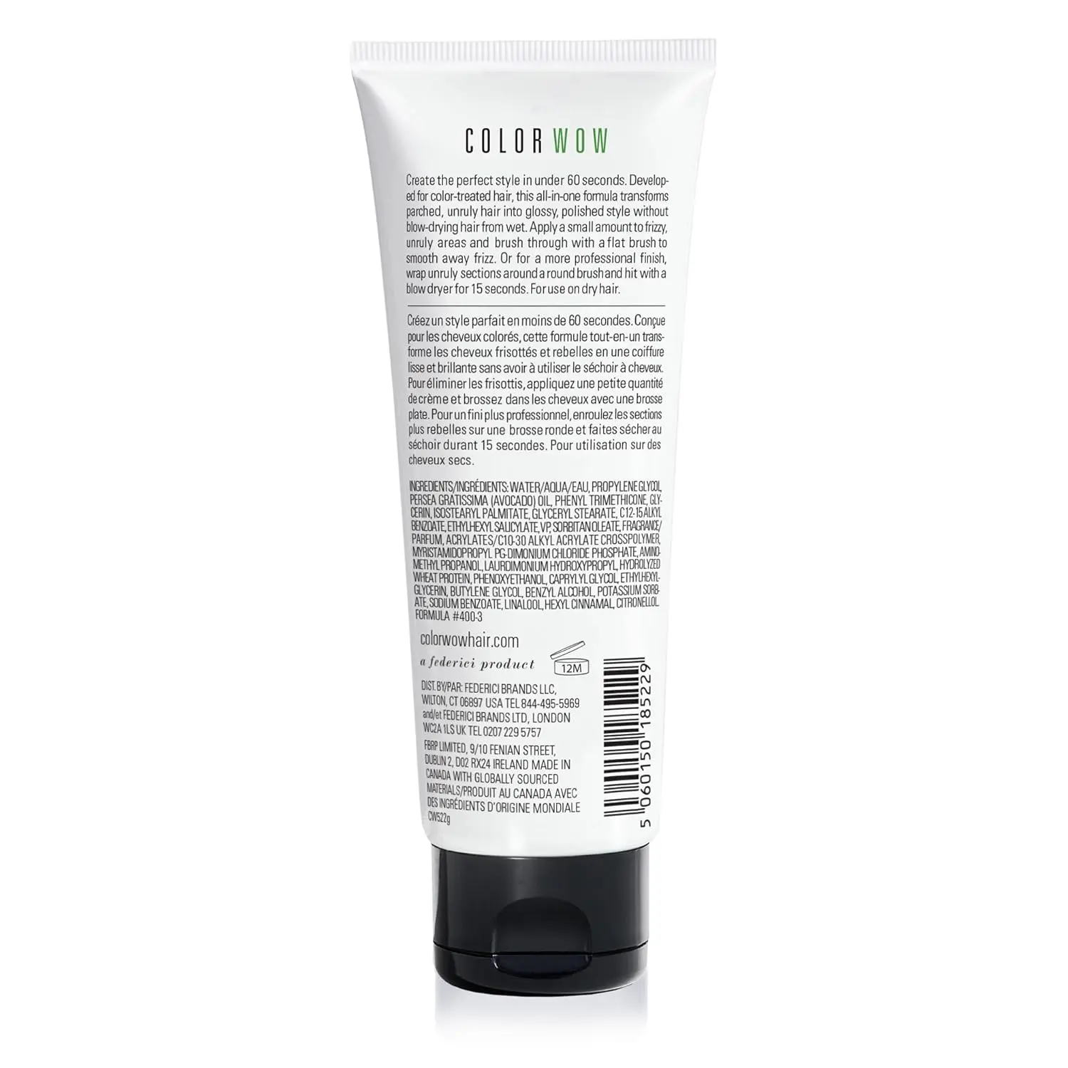 Tired of frizzy, dry, or damaged hair ruining your day? Introducing COLOR WOW One Minute Transformation, your secret weapon for achieving a smooth, supple, and freshly blow-dried look in, well, one minute! This non-greasy styling cream is specially formulated to banish unruly frizz and restore your hair’s natural moisture balance, leaving it looking healthy and radiant. Unlike other styling products, our unique formula leaves no waxy or greasy residue, ensuring your hair feels light and touchable. It’s the perfect quick fix when you don’t have time for a full shampoo and styling session. Infused with the goodness of avocado oil and omega-3 fatty acids, COLOR WOW One Minute Transformation deeply nourishes and revitalizes your hair, promoting shine and manageability. Say goodbye to bad hair days and hello to effortless, salon-worthy results with COLOR WOW One Minute Transformation. It’s your go-to solution for instant hair perfection! It’s the perfect product to keep in your handbag for when you need an instant fix, giving you the confidence to tackle anything the day throws at you. Perfect for taming flyaways or just to add some shine.