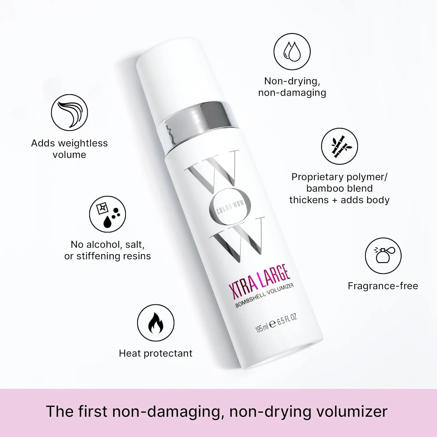 Enjoy peace of mind knowing that our formula is alcohol-free, sulfate-free, phthalate-free, contains no essential oils or color distorting agents, and is gluten-free, vegan, and cruelty-free. Experience the difference of a volumizer that cares for your hair while delivering extreme volume and style that lasts. Get ready for bombshell volume without the damage! Finally, achieve the full, thick hair you’ve always dreamed of with COLOR WOW Xtra Large Bombshell Volumizer.