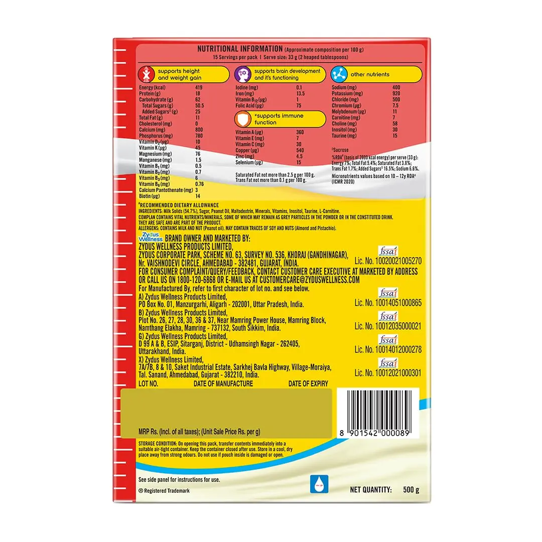 Complan Classic Vanilla is a delicious and nutritious health drink designed to support optimal growth and overall well-being. This clinically proven formula provides 2 times faster growth compared to a regular diet, making it an ideal choice for growing children and those seeking to improve their nutritional intake. Packed with First Class Protein, Complan supports muscle development and repair. It also contains a comprehensive blend of 34 vital nutrients, including essential vitamins and minerals, to ensure your body receives the building blocks it needs to thrive. Vitamins A, E, and C contribute to a healthy immune system, helping to protect against illness and infection. The inclusion of Iodine, Iron, Potassium, and Chloride helps maintain proper fluid balance within the body, crucial for various bodily functions. For brain development and cognitive function, Complan is fortified with Vitamin B12 and Folic Acid. It also contains Sodium. This versatile health drink can be easily incorporated into your daily routine by mixing it with either milk or water, making it a convenient and enjoyable way to boost your nutrition. Whether you’re looking to support your child’s growth, improve your immune system, or simply ensure you’re getting all the essential nutrients your body needs, Complan Classic Vanilla is a great solution. The 500g pack size is perfect for regular use.