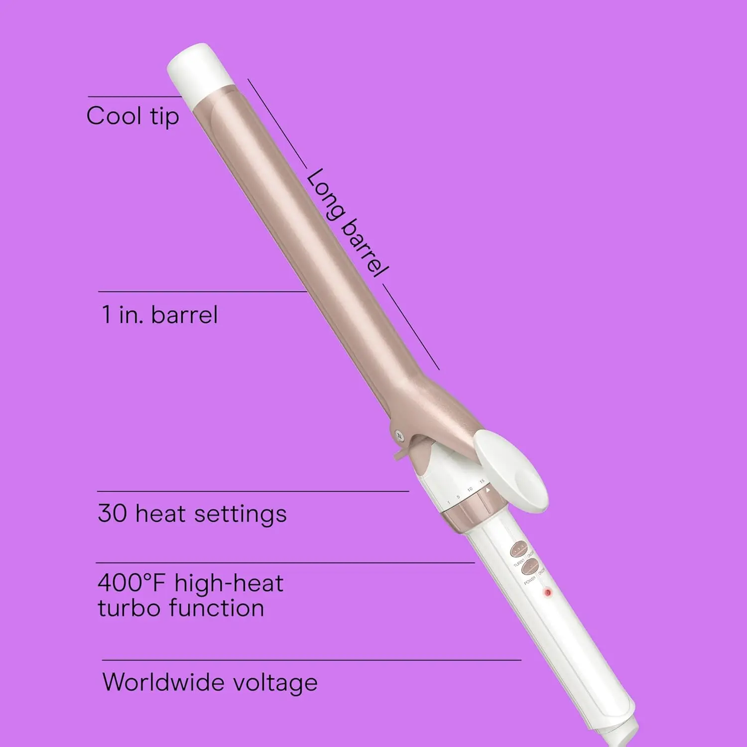• 1-inch XL long barrel for classic curls