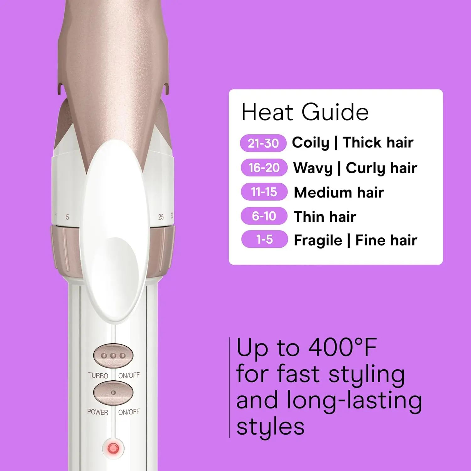• Turbo Heat boost for difficult to style spots