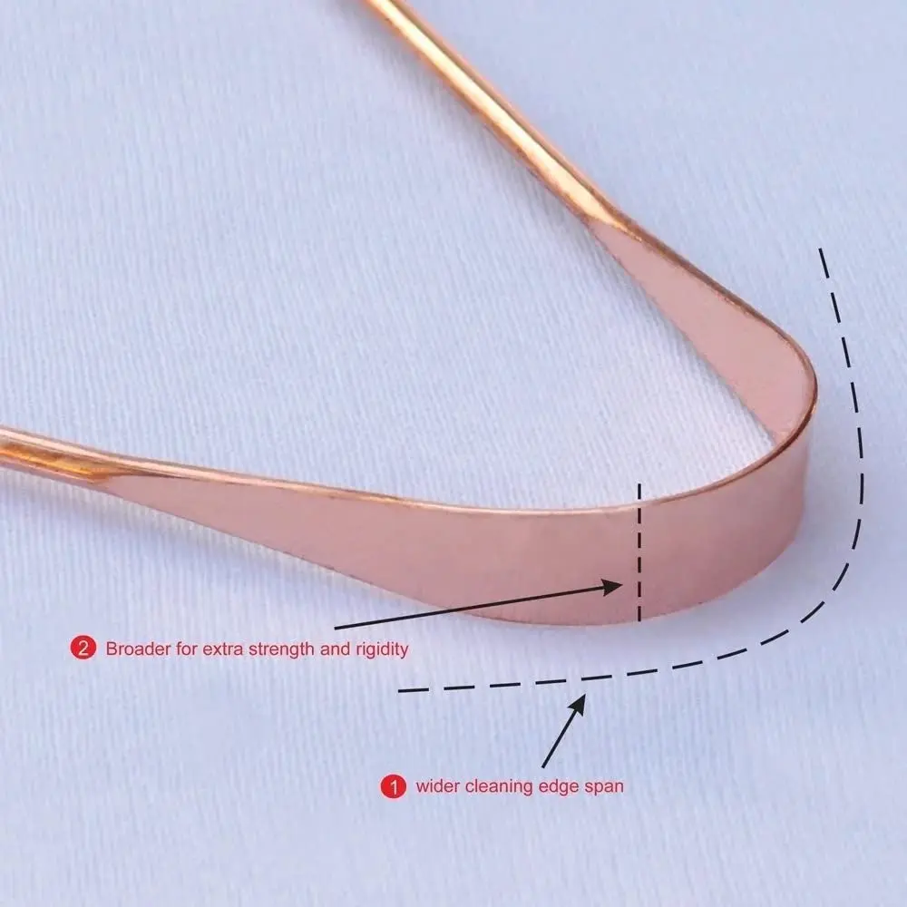 Experience a cleaner, healthier mouth with our Copper Tongue Cleaner! Crafted from pure, antimicrobial copper, this tool effectively removes bacteria and toxins from your tongue, addressing the root cause of bad breath. Regular use of our copper tongue scraper not only freshens your breath but also reduces plaque buildup, improving your overall oral hygiene. Notice an enhanced sense of taste as you eliminate the film that coats your tongue. Furthermore, the gentle scraping action stimulates the production of digestive enzymes, aiding in better digestion. Our tongue cleaner features a smooth, ergonomic design for comfortable and easy use. Simply place the rounded end at the back of your tongue and gently scrape forward to remove unwanted residue. Made from high-quality, safe materials, our copper tongue cleaner is designed for hygiene and longevity. Easily clean it by rinsing with warm water after each use and storing it in a dry place. Invest in a sustainable solution for fresh breath and improved oral health – our durable copper tongue cleaner is built to last for up to six months with proper care, saving you money and reducing waste compared to disposable alternatives. Say goodbye to bad breath and hello to a confident, healthier you!