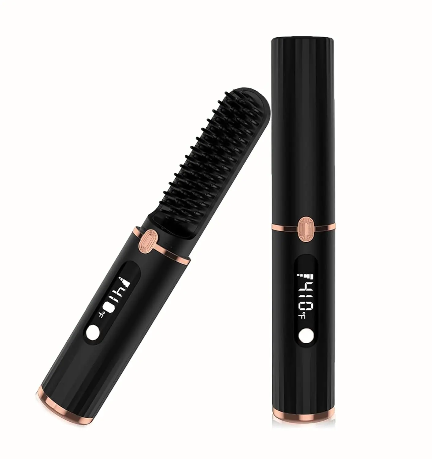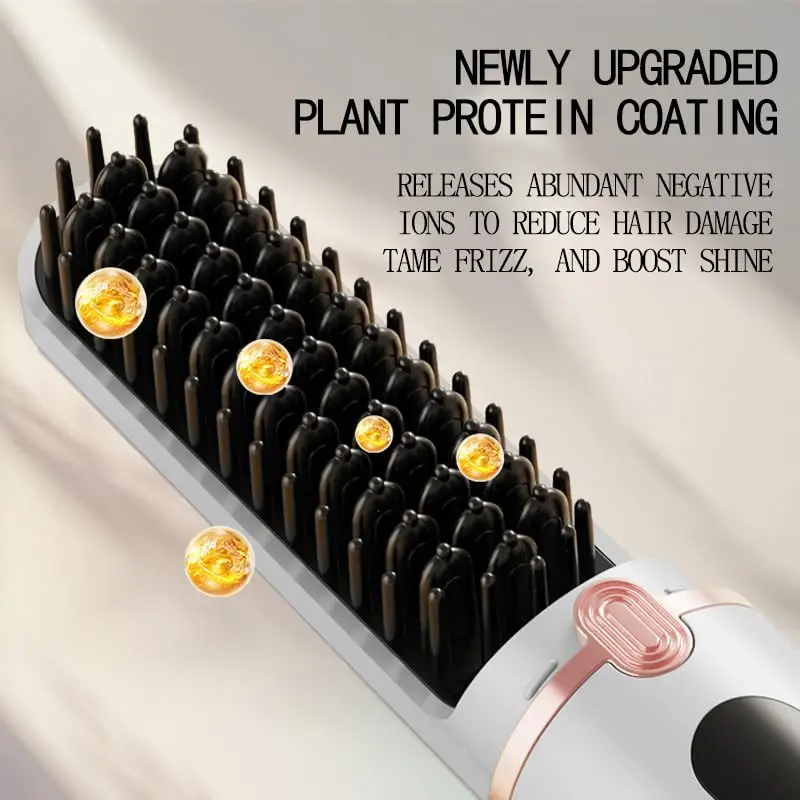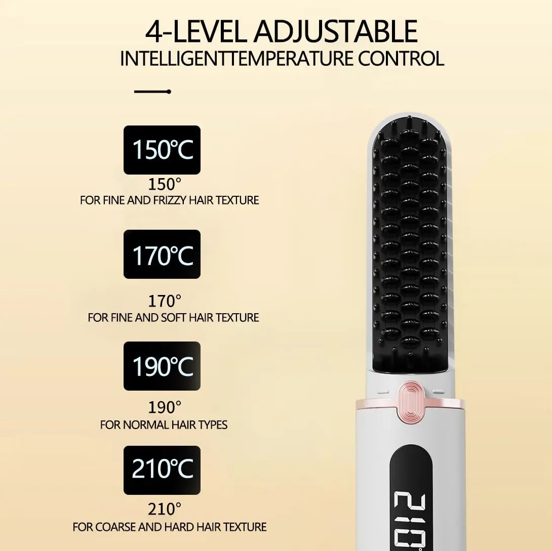 The Cordless Beard Straightener Comb is a 2-in-1 tool for hair and beard straightening with a 4500mAh battery. It features anti-scalding protection, auto power-off, and fast heat-up. Perfect gift for men.