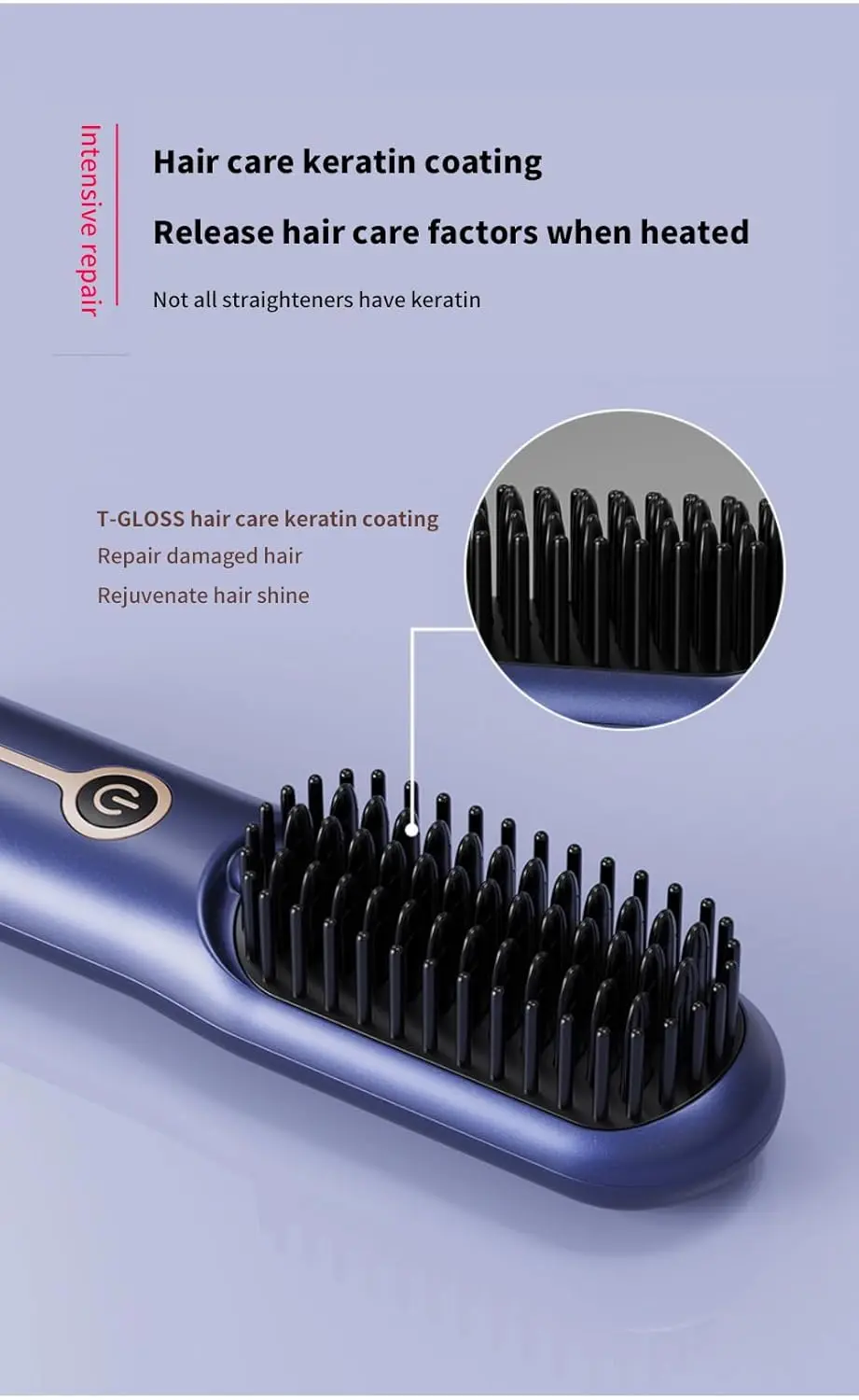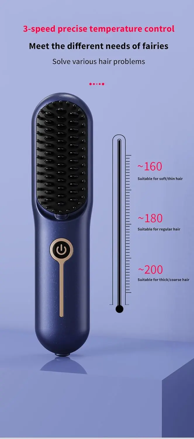 Experience the freedom of styling your hair anywhere with our Cordless Hair Straightener Brush. This innovative hair tool combines portability with advanced technology to deliver smooth, shiny, and healthy-looking hair. No more struggling with cords or being tied to an outlet. Our cordless design allows you to style on the go, whether you’re traveling, at the gym, or simply need a quick touch-up. The ceramic plates ensure even heat distribution, minimizing damage and frizz while maximizing shine. Infused with Keratin Care Coating, this straightener actively protects your hair during styling, reducing heat damage and promoting softness and strength. The advanced ceramic plates also release hair care factors when heated, further nourishing and protecting your locks. With adjustable heat settings of 160°C, 180°C, and 200°C, you can customize the temperature to suit your specific hair type and styling needs. Safety is paramount; the lightweight design and safety lock make it easy to handle and store without worry. Enjoy fast heating, ready to use in under 60 seconds. The USB-C rechargeable 4000mAh battery offers long-lasting power and universal charging compatibility, making it perfect for travel with power banks and travel adapters. Get ready to experience salon-quality results wherever life takes you with this amazing cordless straightener brush.