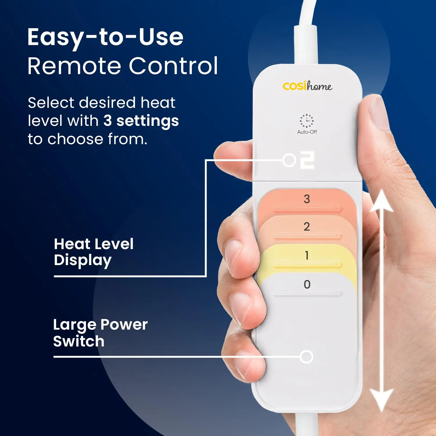 • 3 heat levels for customized comfort.