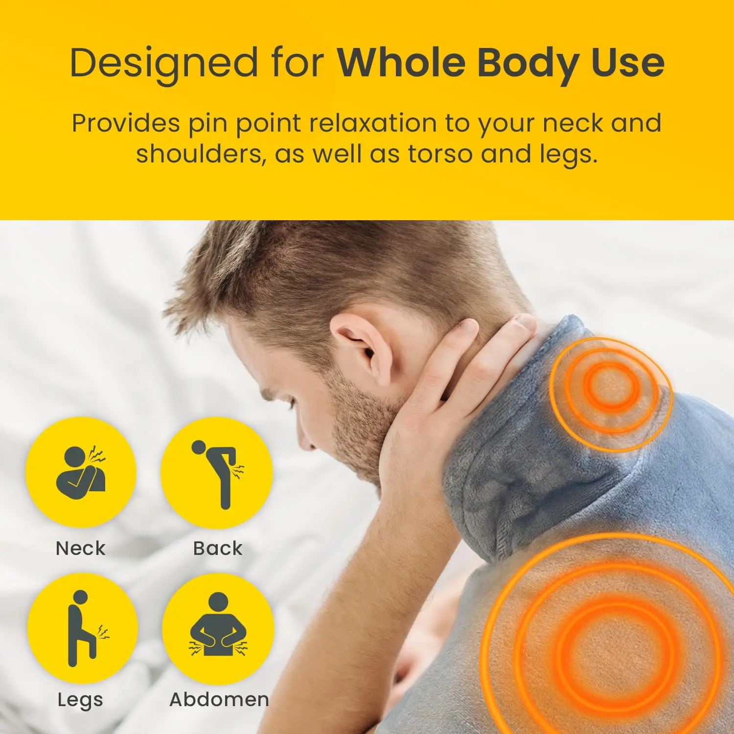 This versatile heating pad is not limited to just neck and shoulder use. Its flexible design allows you to wrap it around your neck and shoulders, or unwrap it and lay it across your legs, stomach, back, or other body areas to provide warmth and soothing relief wherever you need it most.