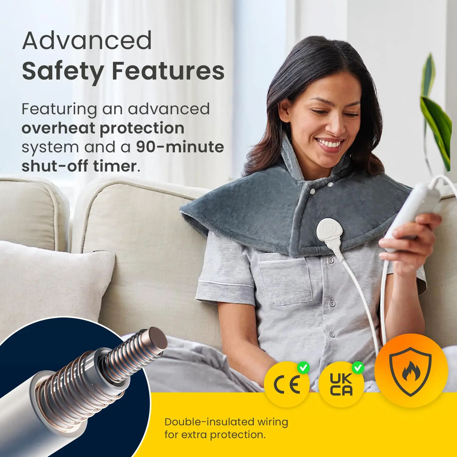 The Cosi Home heating pad is incredibly energy efficient, costing as little as 3p per hour to run based on current UK energy tariffs. This makes it a cost-effective alternative to microwavable heating pads, hot water bottles, or gel packs. Enjoy consistent and even heat distribution thanks to its advanced heat regulator, which maintains a comfortable temperature throughout your use.