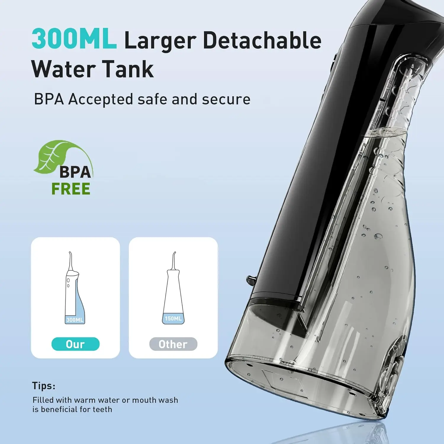 • 300ml large capacity water tank.