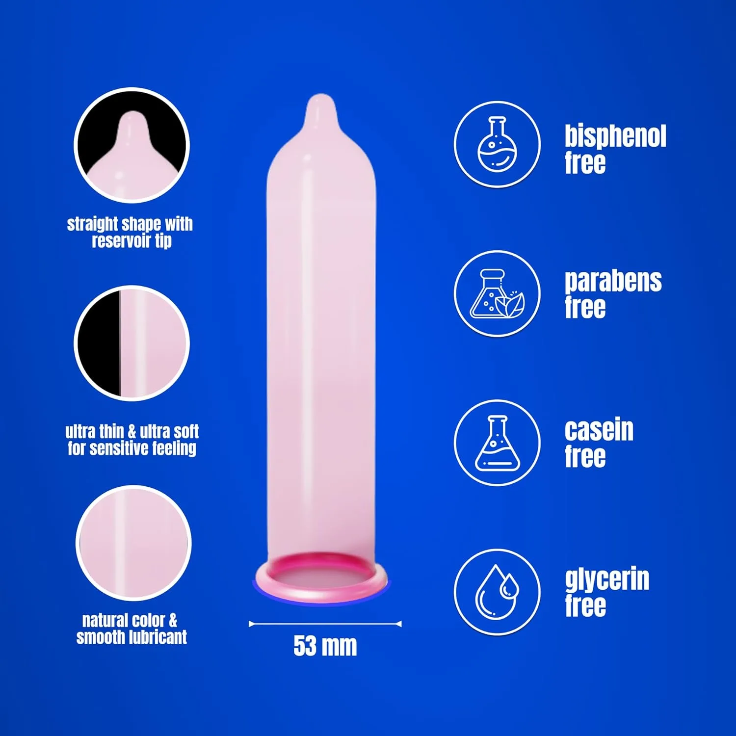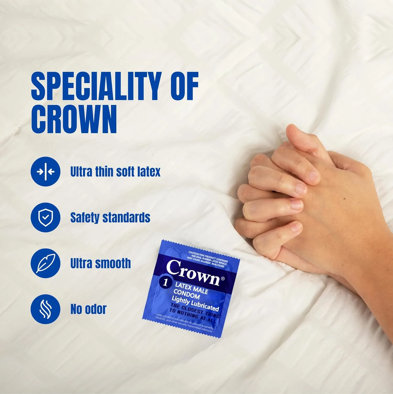 Experience unparalleled intimacy with Crown Condoms Okamoto, crafted with patented Sheerlon latex for an ultra-thin feel that’s virtually undetectable. These condoms are designed to provide the ultimate “nothing there” sensation, maximizing pleasure and sensitivity for both partners. Compared to ordinary latex condoms, Crown condoms enhance sensation and intimacy, offering a silkier, more natural feel that mimics skin itself. The ultra-thin design promotes greater heat transfer, heightening the connection and bringing you closer than ever before. Crown condoms eliminate distractions by being odorless, allowing you to focus entirely on the moment. Each condom undergoes rigorous triple testing to ensure the highest standards of quality and reliability. Furthermore, Crown condoms are made with natural ingredients, are vegan-friendly, and come with the perfect amount of lubricant for comfortable and confident use. Choose Crown Condoms Okamoto and discover a new level of closeness and satisfaction. Enjoy enhanced sensitivity, a natural skin-on-skin feel, and the peace of mind that comes with a trusted brand. Elevate your intimate experiences with Crown’s commitment to quality, comfort, and pleasure. These condoms are meticulously crafted to deliver a heightened sense of intimacy and connection. They truly feel like nothing at all, enhancing sensitivity and bringing you and your partner closer than ever before. Feel the difference with Crown.