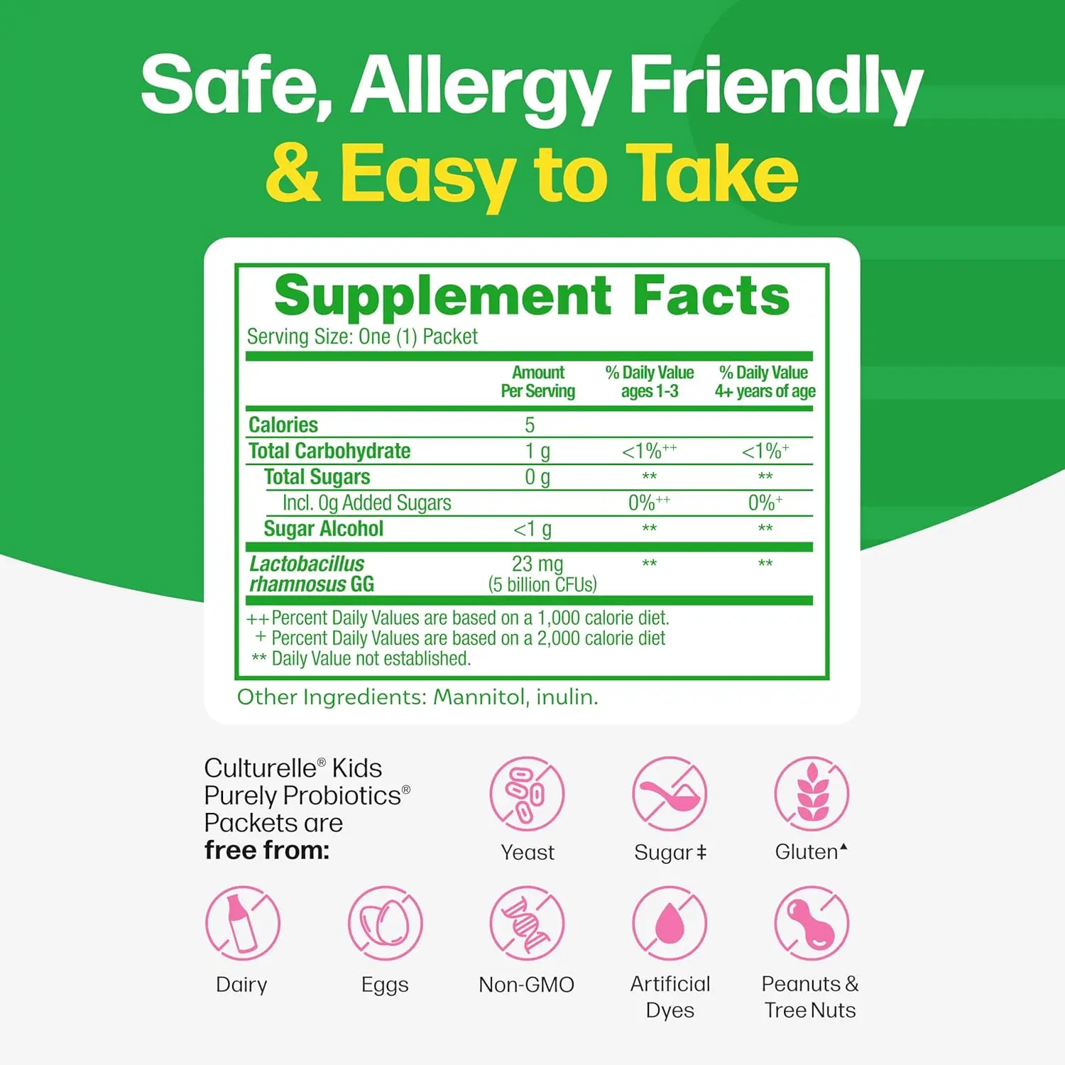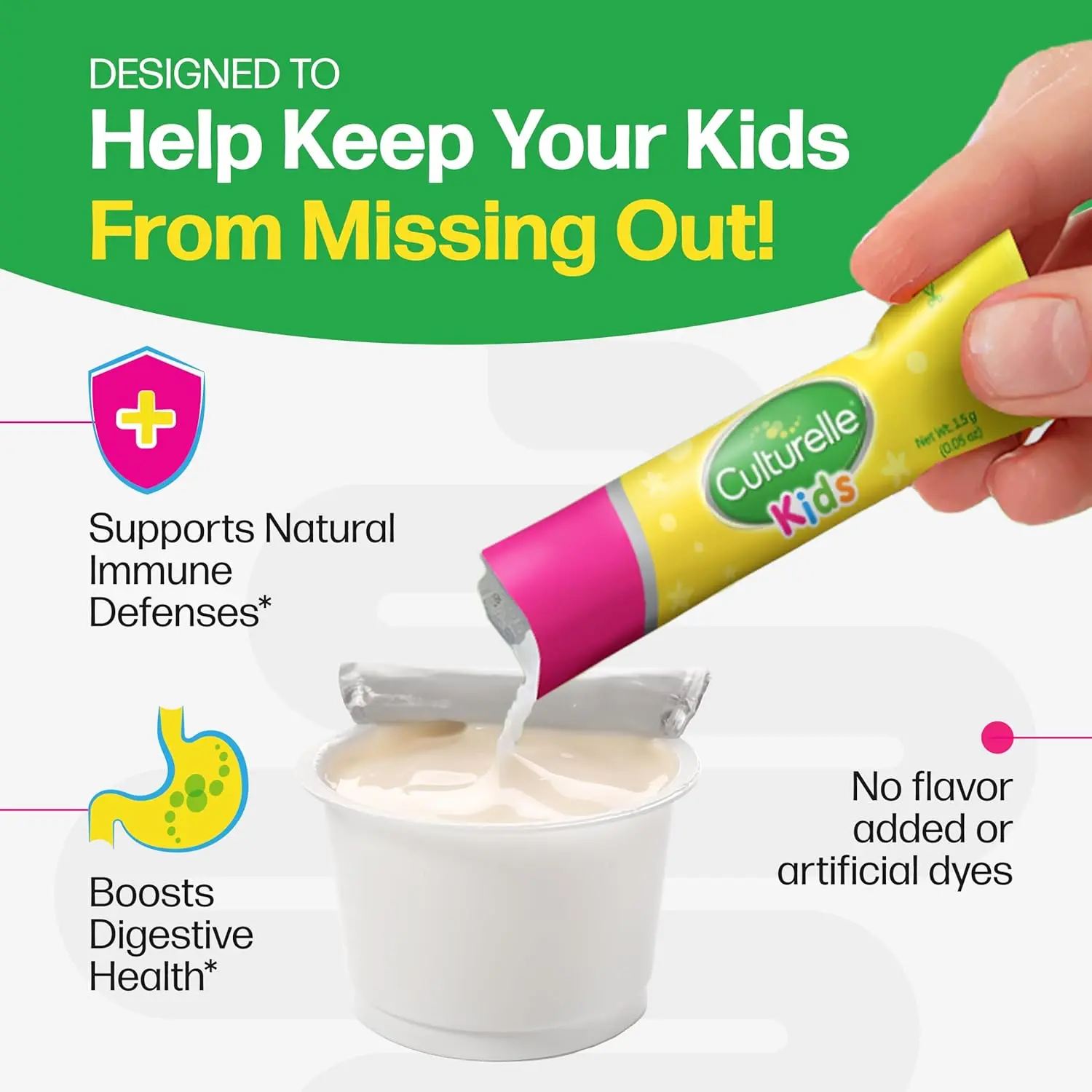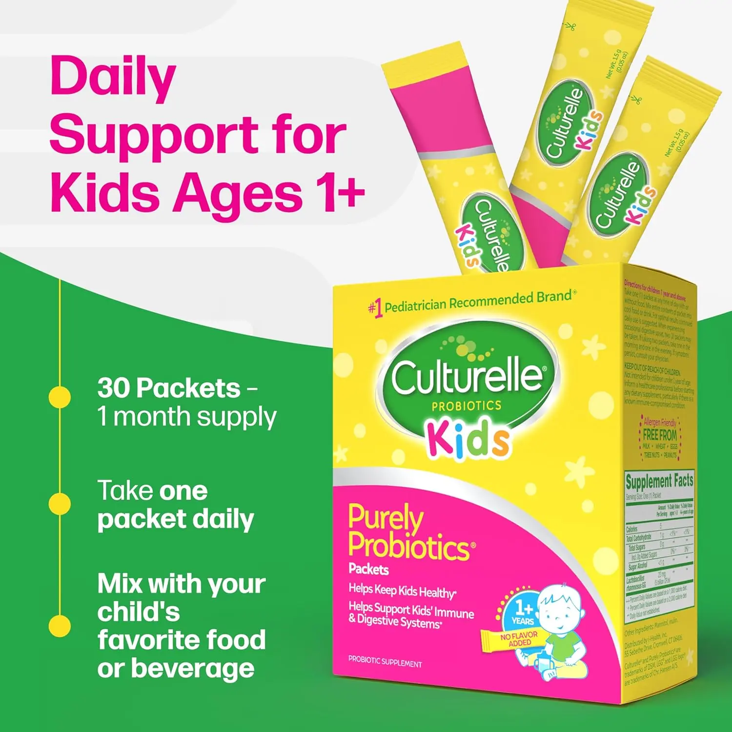 • Contains Lactobacillus GG, the #1 clinically studied probiotic strain in children.