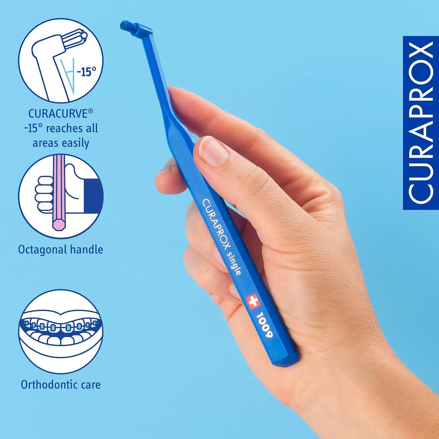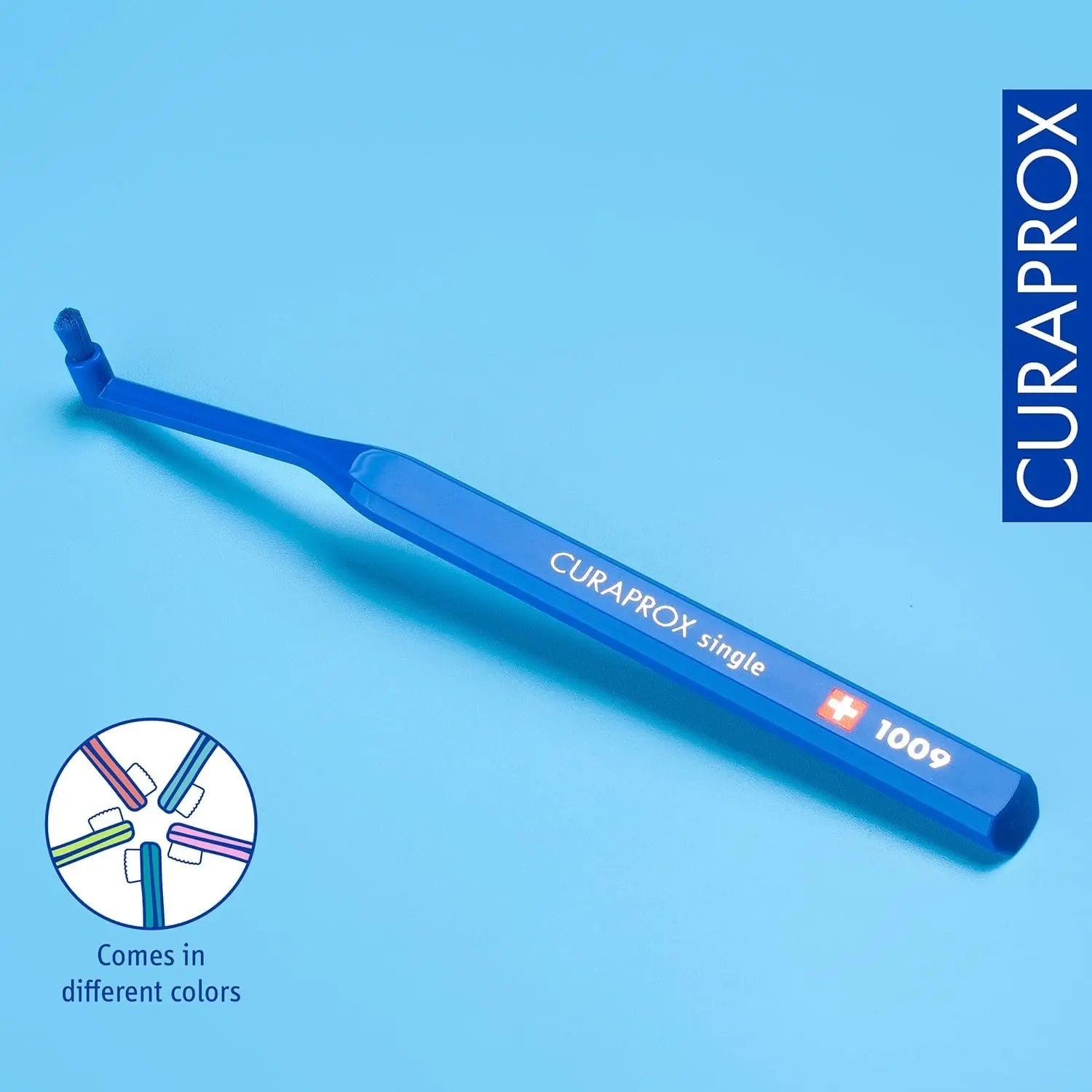 The Curaprox CS 1009 Single Tuft Toothbrush offers precise cleaning with ultra-fine CUREN bristles, ideal for braces, implants, and sensitive gums. Achieve optimal oral health.