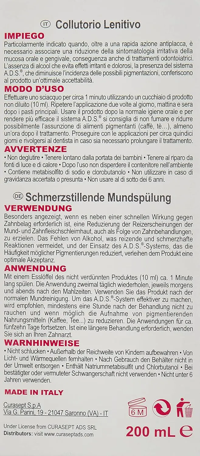 Experience superior oral care with Curasept Ads 020 Mouthwash, your solution for maintaining healthy gums and combating plaque. This advanced mouthwash is formulated to effectively reduce the symptoms of oral mucosal irritation, providing soothing relief and promoting a healthier mouth environment. Its powerful anti-plaque action, thanks to the 0.2% chlorhexidine, works rapidly to eliminate plaque buildup, preventing potential gum problems and ensuring long-lasting freshness. Curasept Ads 020 Mouthwash is your daily defense against gum disease and bad breath, contributing to a confident and healthy smile. Regular use helps to maintain optimal oral hygiene and prevent the development of gingivitis and periodontitis. It’s the perfect addition to your dental routine for a noticeably cleaner and healthier mouth. Don’t compromise on your oral health – choose Curasept Ads 020 Mouthwash for a difference you can feel. Ideal for those seeking effective plaque control and gum protection.