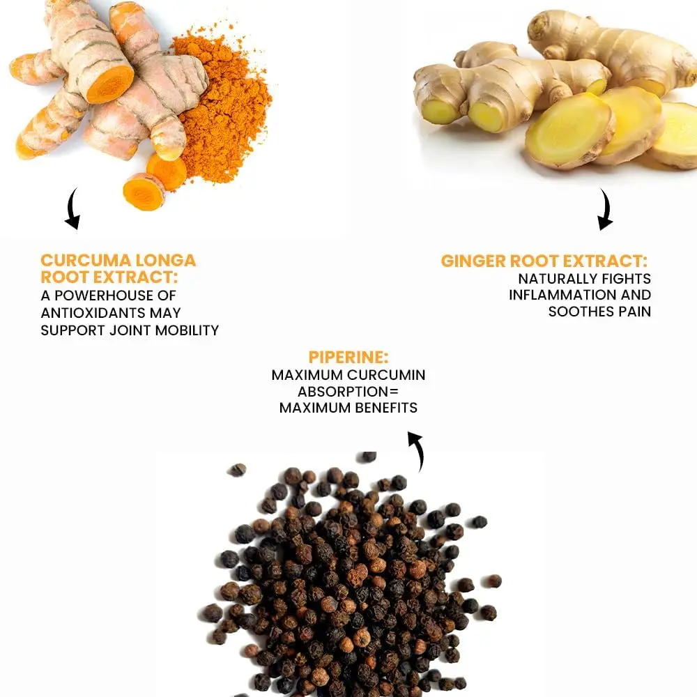 • Contains Curcumin Turmeric, Curcuma Longa Root Powder, and Ginger Root Extract