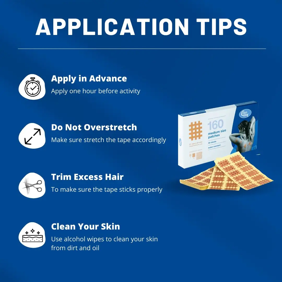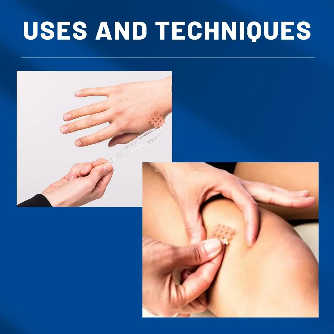 Discover the power of natural healing and targeted pain relief with CureTape CrossLinq Acupressure Patches. These innovative skin patches offer a non-invasive alternative to traditional acupuncture and massage, providing soothing relief for muscle pain, joint pain, and trigger points. CrossLinq patches are designed to support optimal scar recovery by activating or soothing meridians and promoting lymph drainage, helping to restore the skin around scars and surgical wounds. Unlike bulky massagers or uncomfortable acupuncture needles, CrossLinq patches are convenient and easy to use. Simply apply these crosshatch stickers to the affected area for long-lasting relief, wherever you go. The electrostatically charged properties of the patches help lift blockages and reduce pain, promoting overall well-being. With a medical-grade acrylic adhesive, these patches stay securely in place for up to 6 days of continuous wear without leaving any residue or grid patch marks. Trusted by over 25,000 professionals worldwide, CureTape has been a leader in kinesiology and body relaxing taping methods, offering therapeutic bandages and tapes in over 60 countries. Experience the comfort and effectiveness of CrossLinq Acupressure Patches and embrace a natural approach to pain relief and scar healing.