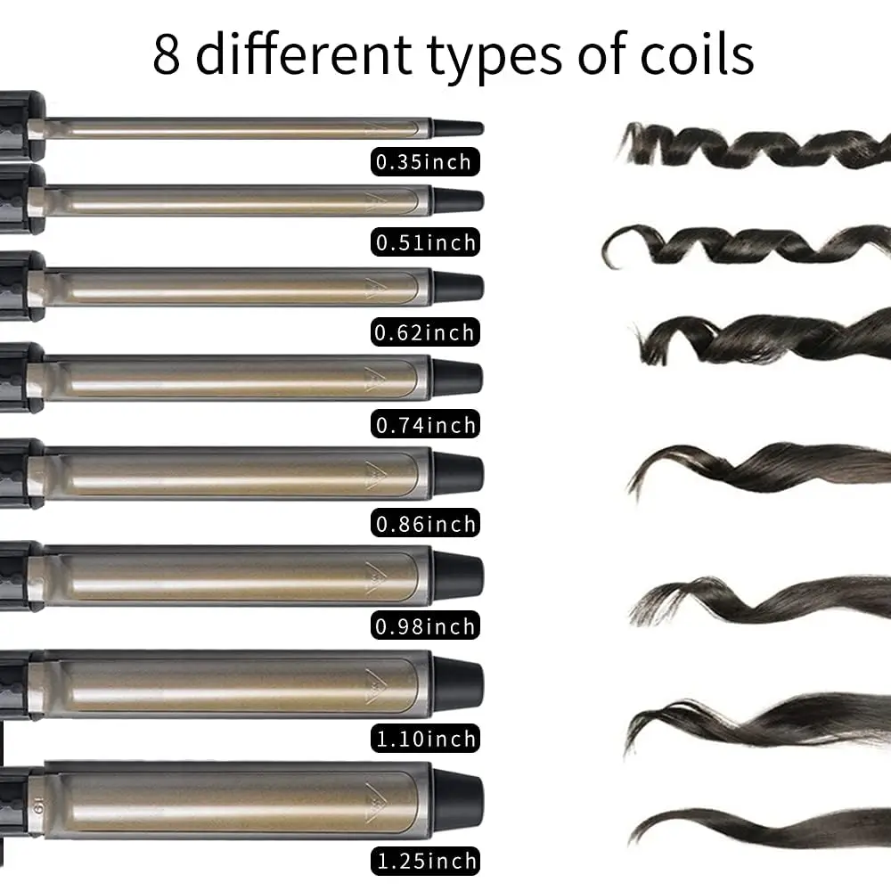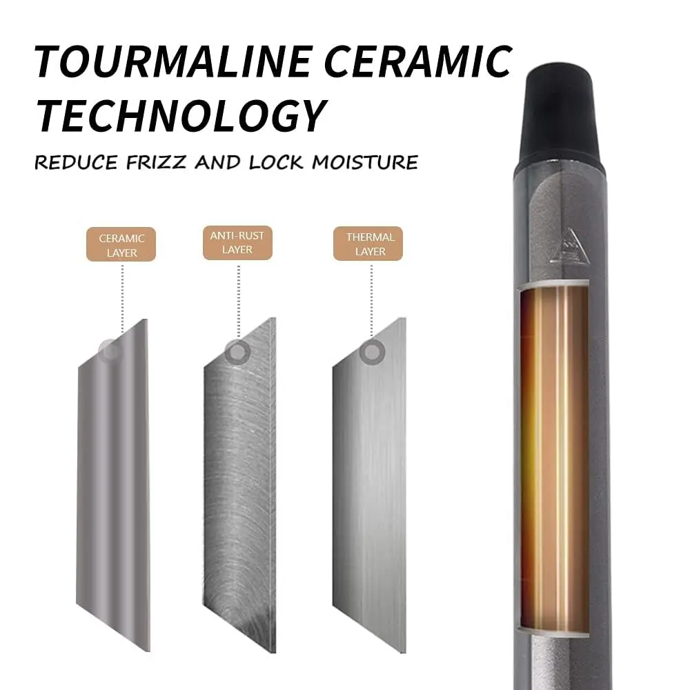 Achieve salon-worthy curls at home with our Professional Tourmaline Ceramic Curling Iron! This versatile tool is designed to cater to all hair types and desired styles. The advanced 3-Layered Barrel TOURMALINE CERAMIC TECHNOLOGY minimizes frizz and locks in moisture, protecting your hair from damage while creating long-lasting, beautiful curls. With 8 different barrel sizes to choose from, you can effortlessly create everything from tight ringlets to voluminous waves and tousled, piece-y textures.