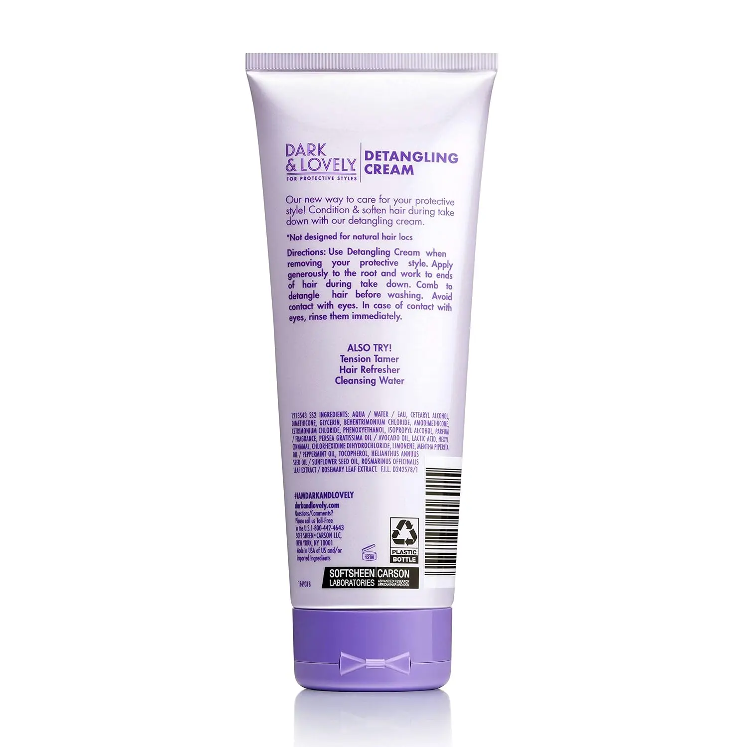 Experience effortless detangling and ultimate hair care with the new Dark and Lovely Detangling Cream! Designed specifically for use during protective style takedowns, this cream provides a gentle yet effective way to soften, condition, and melt away buildup. Enriched with Avocado and Peppermint Oil, our unique formula nourishes your hair while simplifying the detangling process. Say goodbye to frustrating knots and hello to smooth, manageable strands. This detangling cream is also perfect as an everyday conditioner, leaving your hair feeling soft, hydrated, and healthy. Formulated without dyes, mineral oils, or petrolatum, it’s safe and gentle for all hair types. Whether you rock braids, weaves, wigs, or locs, Dark and Lovely Detangling Cream is your new go-to solution for easier takedowns and healthier, happier hair. Join the 9 out of 10 consumers who agree – Dark and Lovely Detangling Cream leaves hair feeling incredibly soft after takedown and is highly recommended! And don’t forget to explore our new Fade Resist permanent haircolor line, offering 18 notice-me shades that last up to 8 weeks with 100% gray coverage!