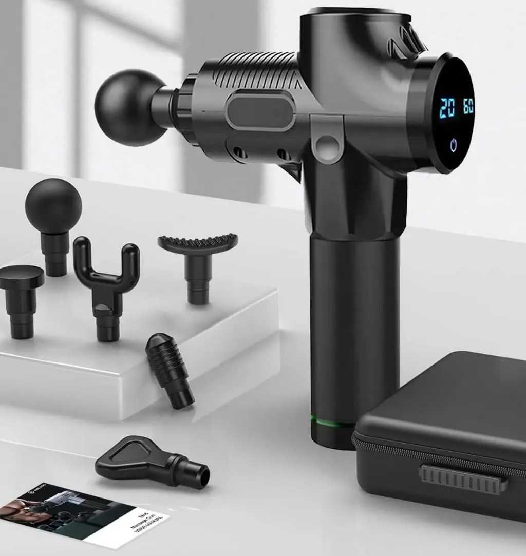 Experience immediate muscle relief with our Deep Tissue Massage Gun. This powerful device uses percussion therapy to target deep muscle tissue, alleviating stiffness, improving circulation, and accelerating muscle recovery after intense workouts or extended workdays. Its high-torque brushless motor delivers up to 3200 RPM, providing a robust and effective massage. Customize your experience with 30 adjustable speed levels and 6 interchangeable massage heads, designed to target different muscle groups, including your neck, back, shoulders, legs, and joints. Whether you need relaxation, a pre-workout warm-up, or deep tissue therapy, this massage gun is perfect for use at home, the gym, or the office. Enjoy a peaceful massage experience thanks to our premium noise-reduction technology, which operates between 30–50dB. Its compact and lightweight design, coupled with a durable carry case, makes it ideal for travel and on-the-go pain relief. The built-in 2500mAh lithium battery offers up to 6 hours of use per charge, and the smart LED touch screen displays speed and battery level for easy monitoring. This massage gun is a thoughtful wellness gift for men and women, especially gym enthusiasts, athletes, and those with sedentary jobs. The package includes a remote, Type-C charger, and premium travel case for a complete and convenient experience. This versatile device can be used for warm-up before a strenuous training or competition. It’s also perfect for post-workout recovery, allowing you to bounce back faster and stronger. If you suffer from chronic pain or muscle stiffness, this massage gun can provide targeted relief, helping you manage your symptoms and improve your quality of life.