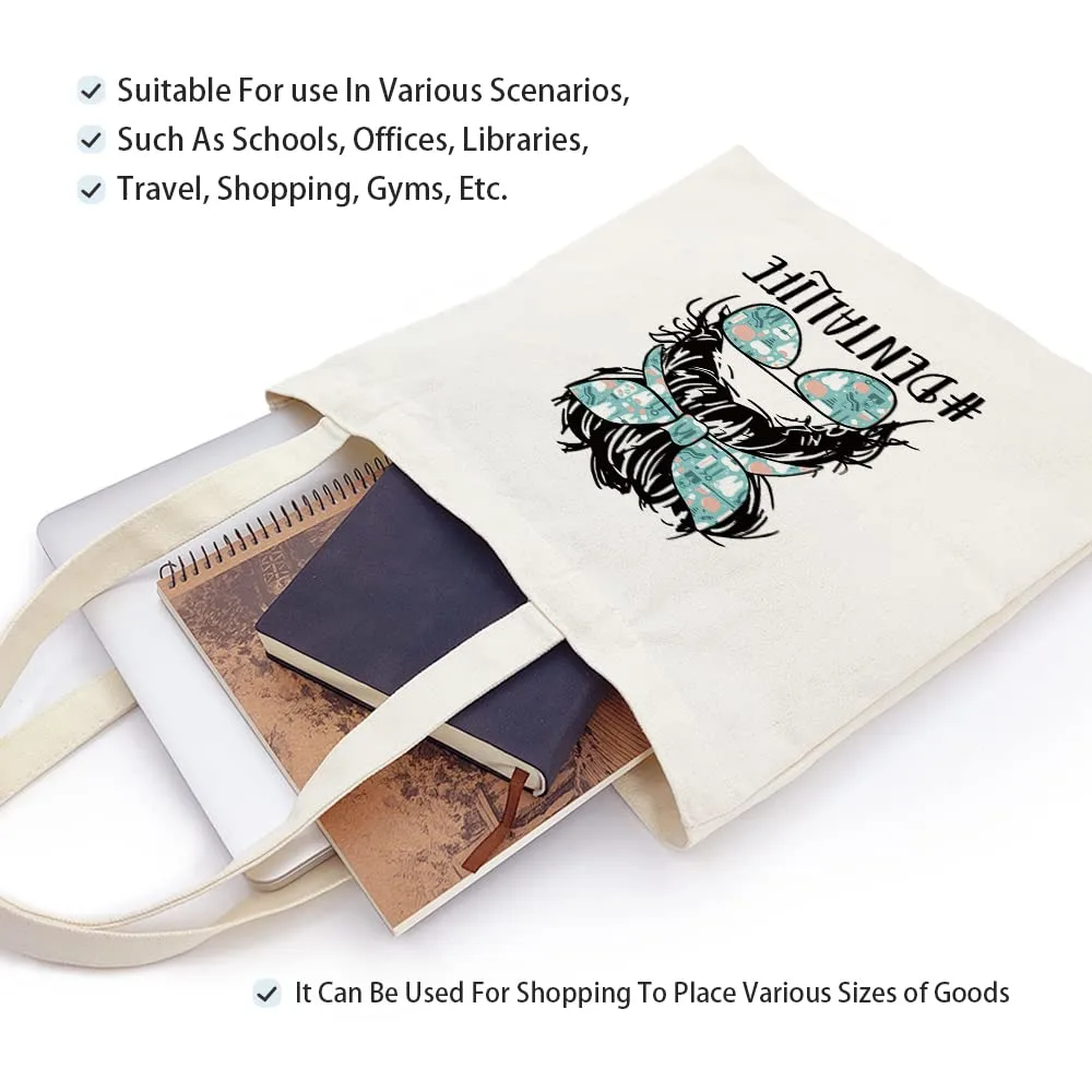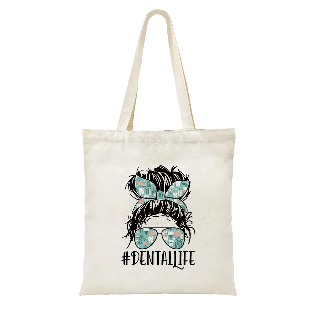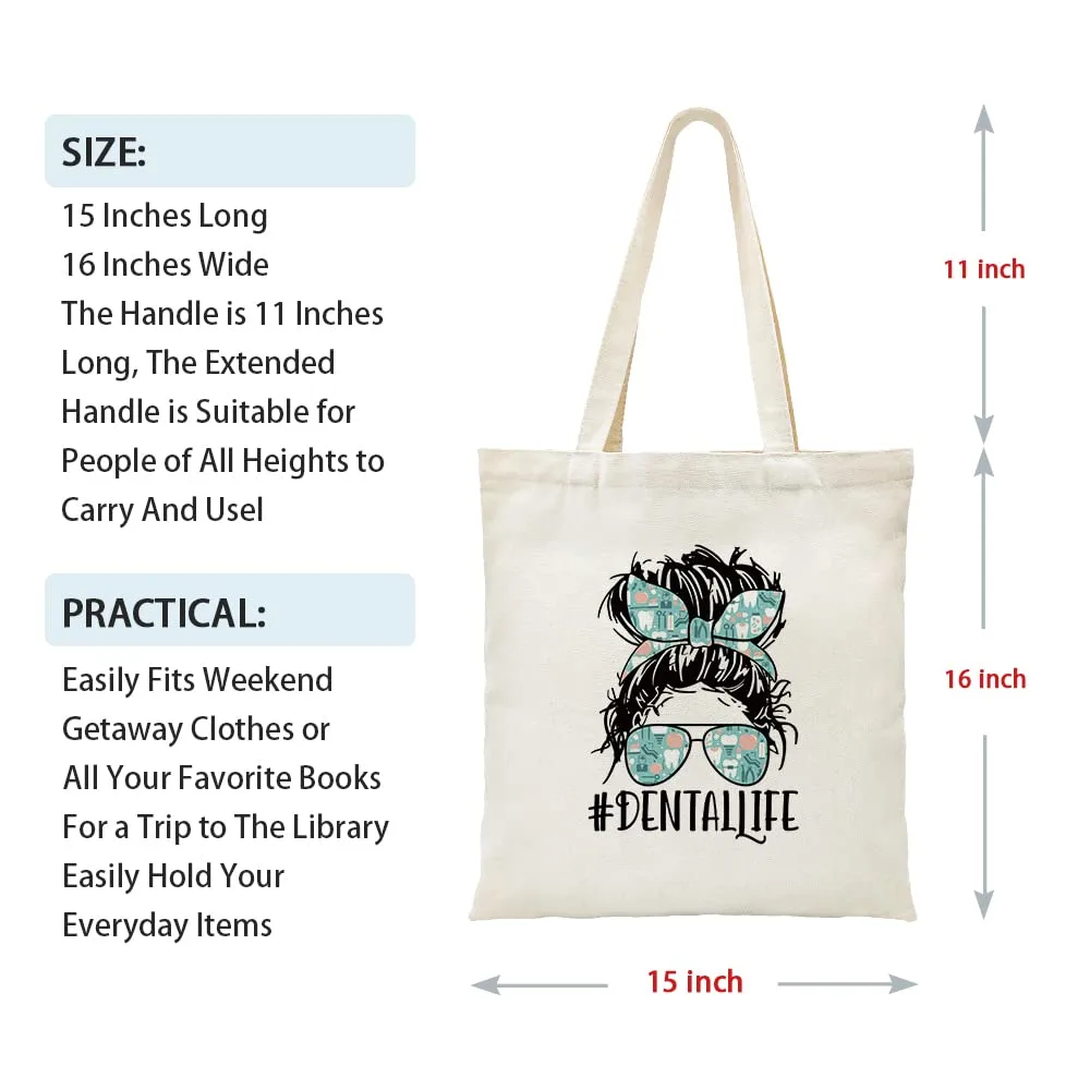 This “Denta Life” tote bag is the perfect gift for any dental hygienist! Made from durable 12 oz natural cotton canvas with reinforced stitching, this bag is built to last. It’s sturdy enough to carry everyday essentials and folds flat for easy storage. With ample space for books, laptops, and more, it’s ideal for work, school, or leisure. The comfortable 11-inch handle makes it easy to carry, and the interior zippered pocket keeps valuables secure. Whether it’s a gift for a special dental hygienist or a practical everyday bag for yourself, this versatile tote is sure to be a favorite. Take it to the library, the gym, the office, or on weekend getaways. Its multi-purpose design makes it a fantastic reusable grocery bag or a stylish beach tote. Show your appreciation for the dental hygienist in your life with this thoughtful and functional gift. This tote bag combines practicality with a personalized touch, making it a truly unique and appreciated present. Imagine the joy on their face as they receive a gift that reflects their profession and passion. It is a great way to show you care.