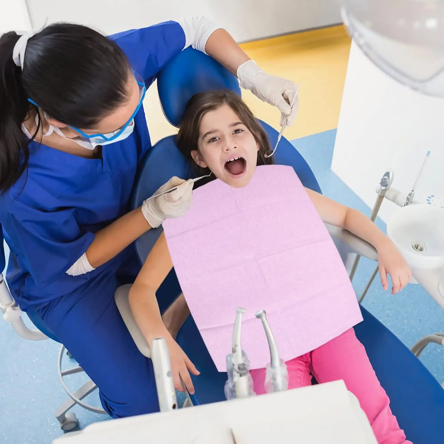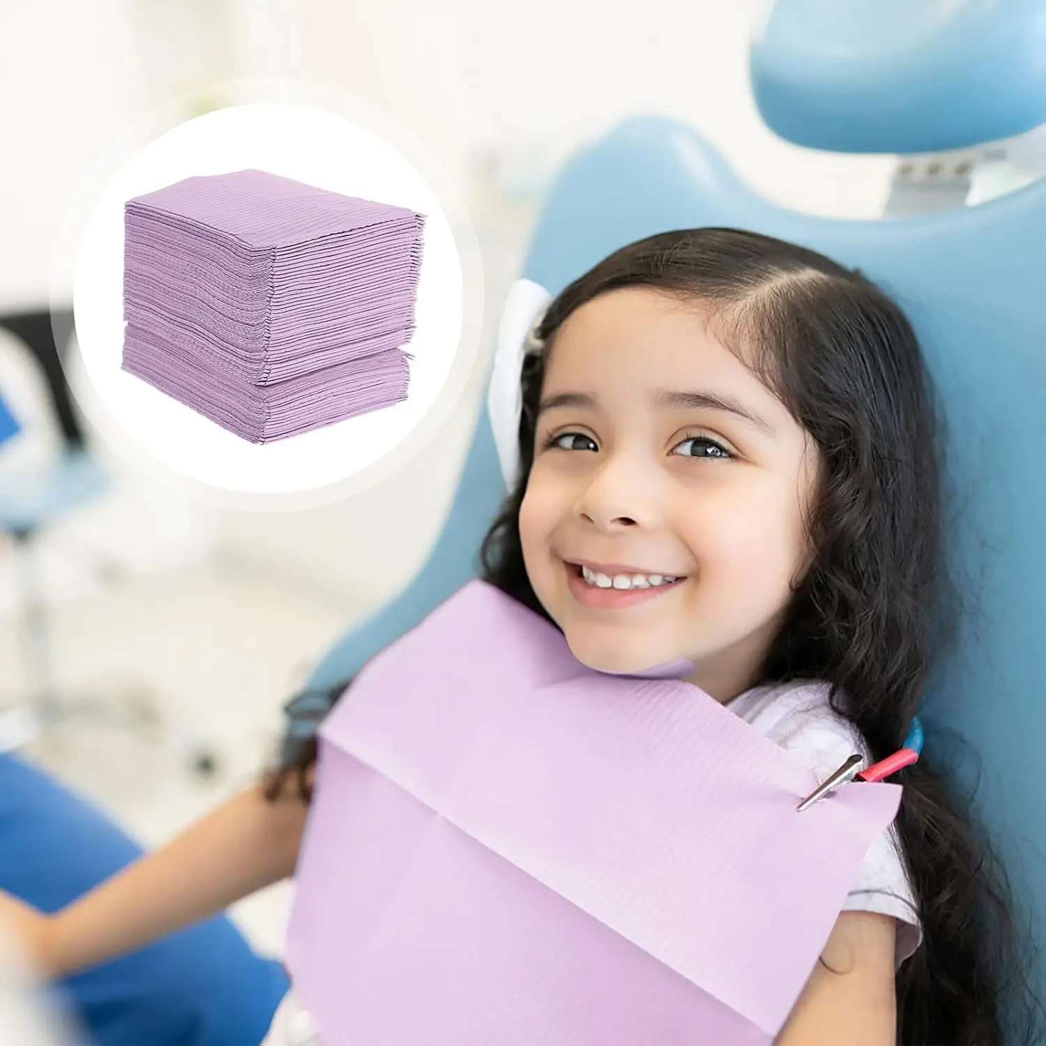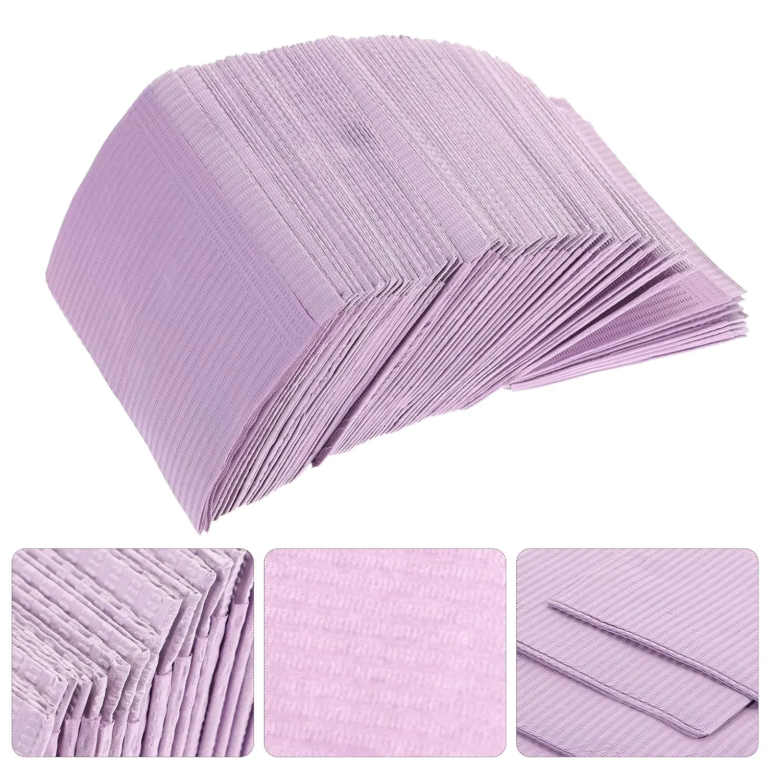 Keep your patients and clients clean and comfortable with these Disposable Dental Bibs. This 125-pack of purple bibs offers a hygienic and convenient solution for a variety of settings, including dental offices, beauty salons, and more. The polyethylene backing provides a reliable waterproof barrier, preventing soak-through and ensuring clothing stays protected. Each bib is designed for single-use, significantly minimizing the risk of cross-contamination, promoting a safer and more sanitary environment for everyone. These bibs are highly absorbent and can effectively handle a substantial amount of saliva, fluids from oral surgeries, and other liquids, making them ideal for procedures where spills are common. The vibrant purple color adds a touch of professionalism and elegance to your workspace. Easy to use and dispose of, these dental bibs streamline your workflow while maintaining the highest standards of hygiene. They are an essential item for any practice or business that prioritizes cleanliness and patient/client well-being. The size is adequate to provide full coverage and is comfortable to wear. Stock up on these disposable bibs to ensure you’re always prepared. These versatile bibs are not only suitable for dental procedures but also for various beauty treatments like hair coloring, perms, and facial treatments. They are also useful in tattoo parlors, medical offices, and even for arts and crafts projects. The disposable nature of these bibs saves you time and effort on laundry and cleaning, allowing you to focus on providing the best possible service to your patients and clients.