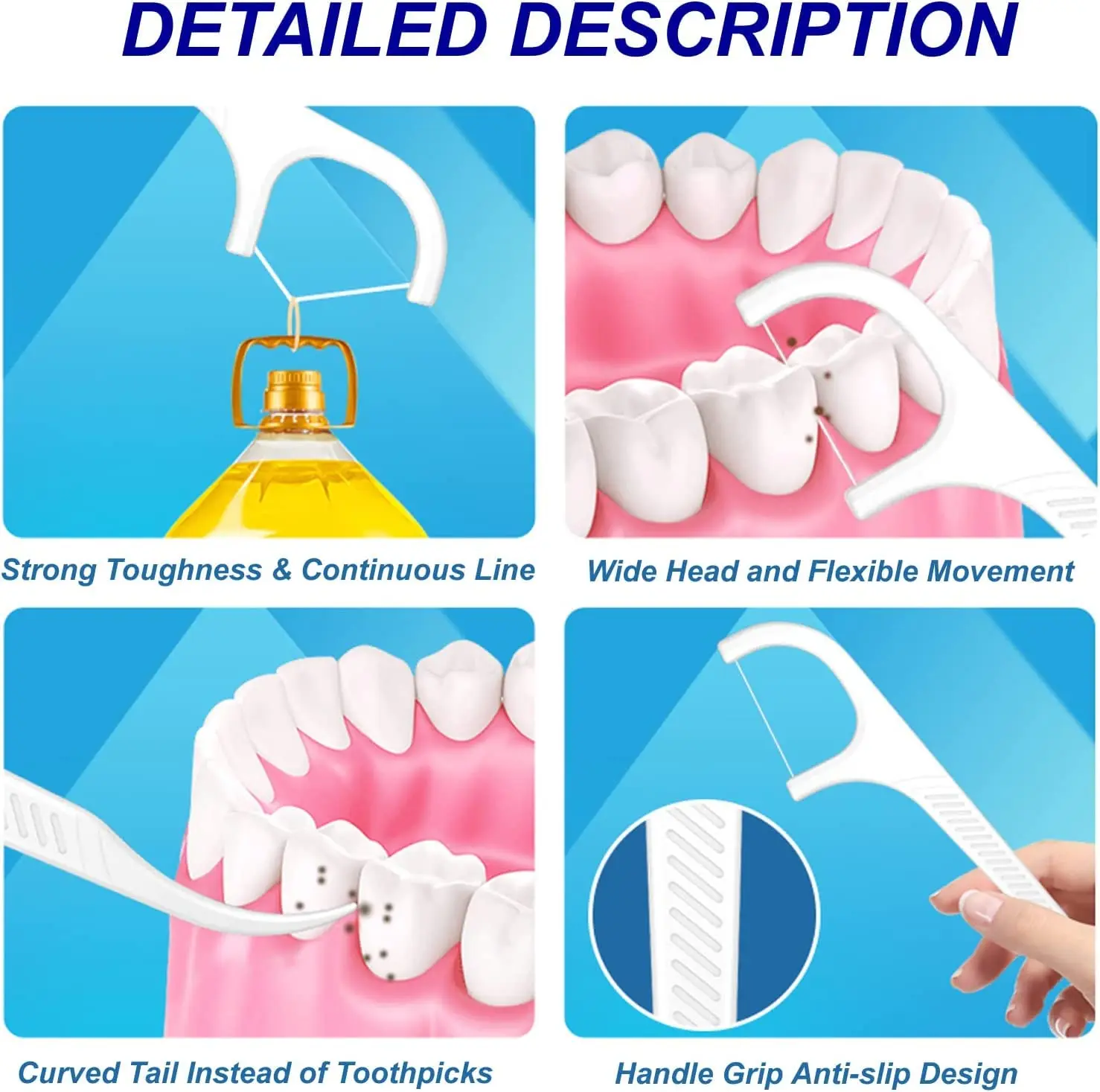 Achieve a brighter, healthier smile with our Dental Floss Picks. These flossers are meticulously designed to provide a superior cleaning experience, removing plaque and food particles from even the tightest spaces between your teeth. Crafted from food-grade polymer scribed material, the floss is exceptionally strong and resilient, resisting breakage and bending for effective and reliable cleaning. The smooth, round wire is gentle on your gums, preventing irritation and ensuring a comfortable flossing experience. The durable polystyrene handle provides a firm and comfortable grip, allowing for precise control and maneuverability. The unique 2-in-1 function allows these floss picks to be used as both interdental brushes and toothpicks, offering a comprehensive cleaning solution for your entire mouth. The non-slip handle design, strategically positioned at the golden point of the floss, features a convex design in the middle to enhance your grip and provide optimal control, protecting your teeth and gums from damage. With our Dental Floss Picks, you can confidently maintain excellent oral hygiene, preventing tooth decay and promoting a healthy, radiant smile. Each pack contains 250 floss picks, ensuring you have a long-lasting supply for your daily oral care routine. Make these floss picks an essential part of your dental arsenal and enjoy the benefits of a cleaner, fresher, and healthier mouth.