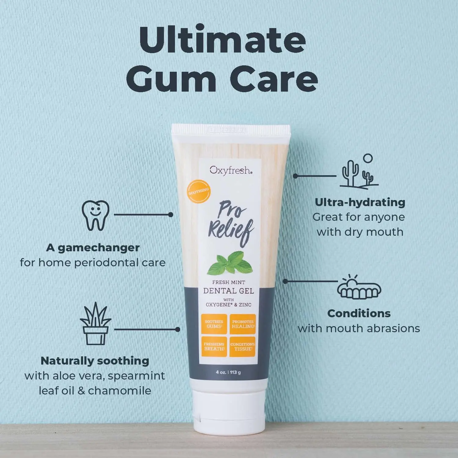 Oxyfresh Dental Gel provides unrivaled gum relief with natural aloe and zinc. Soothes soreness, hydrates tissues, neutralizes bad breath, and is trusted by professionals.