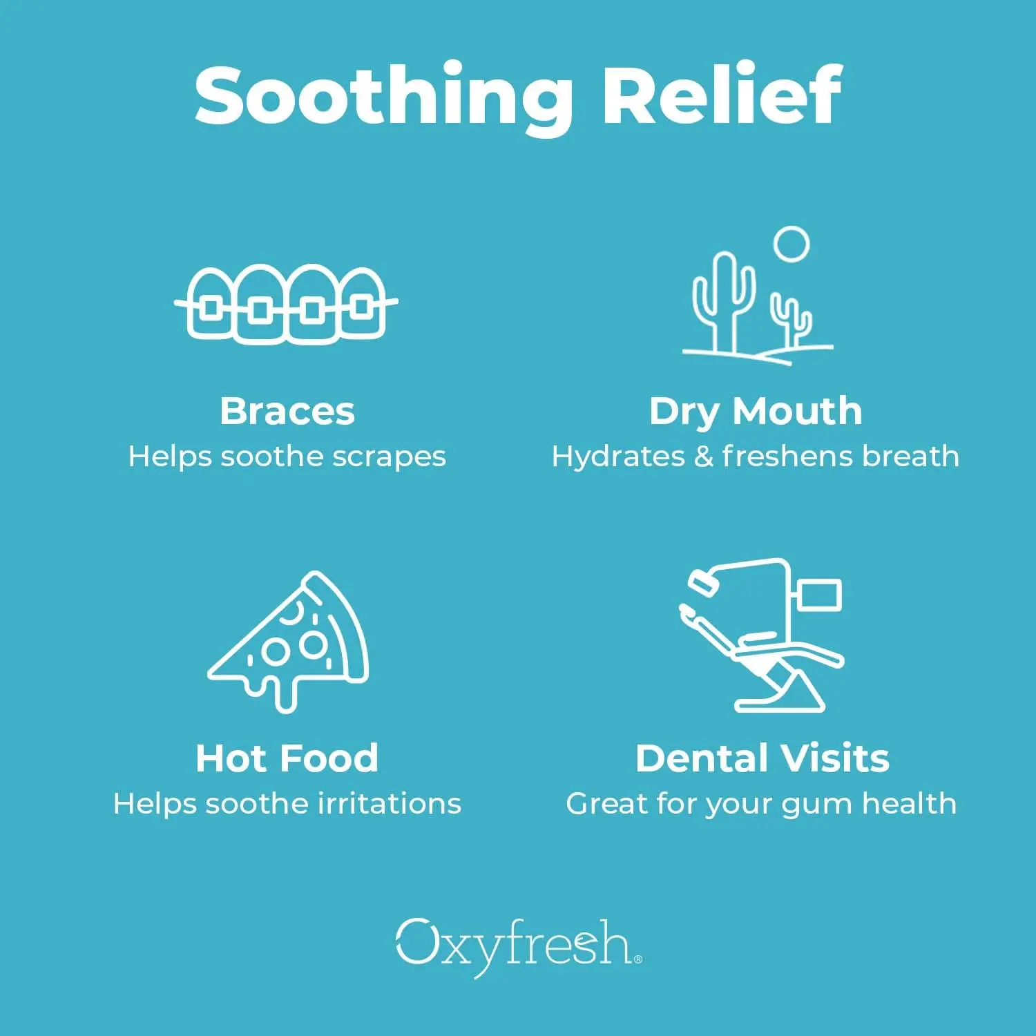 • Intended Use: Gum Relief, Hydration, Breath Freshening