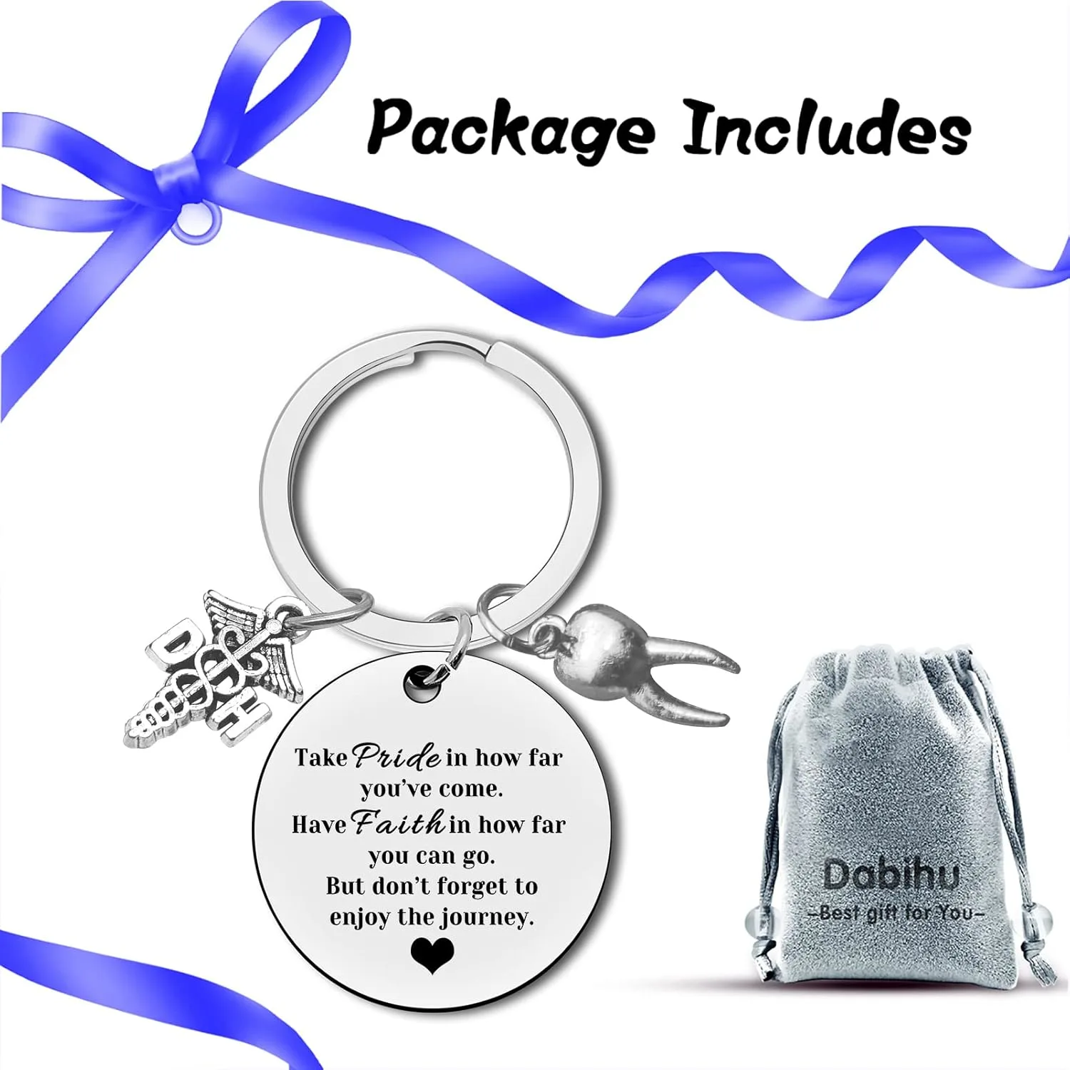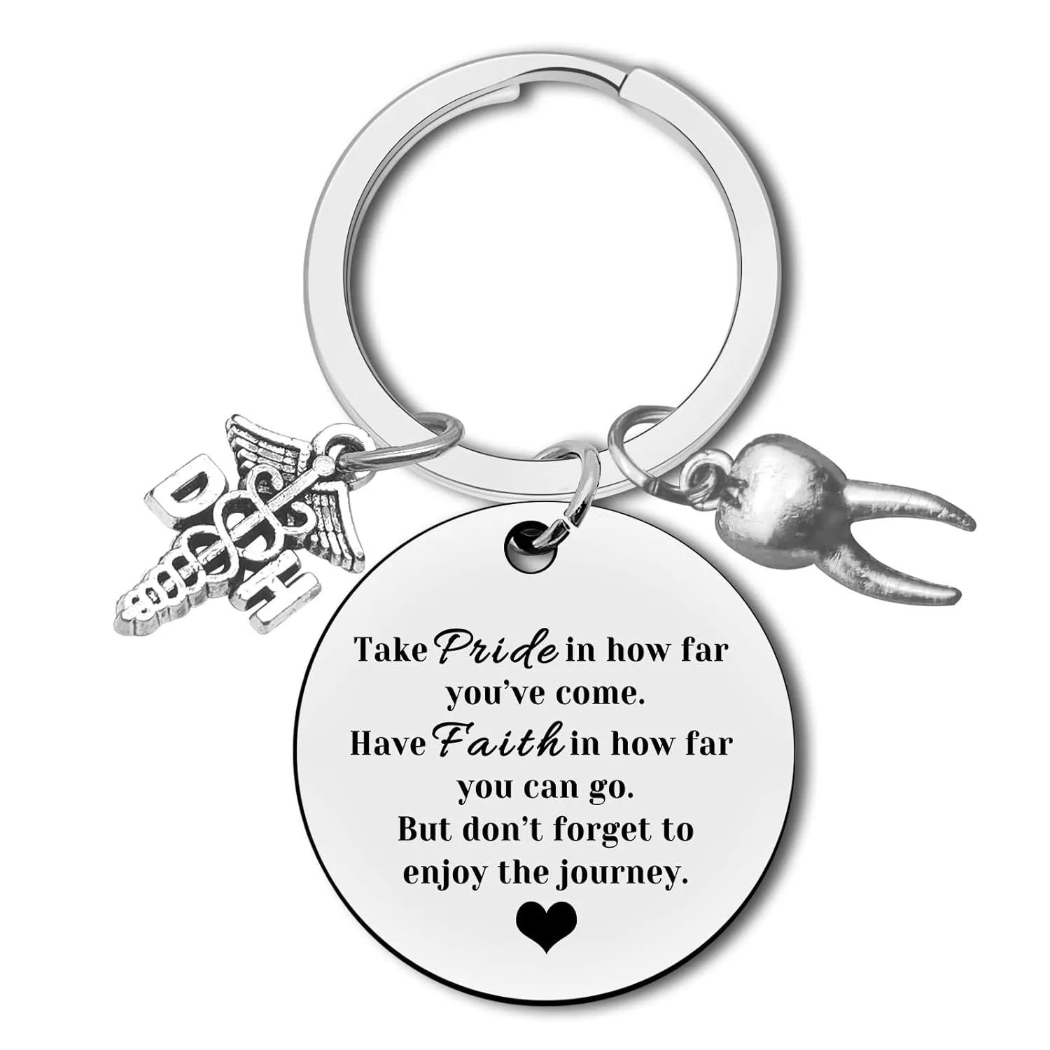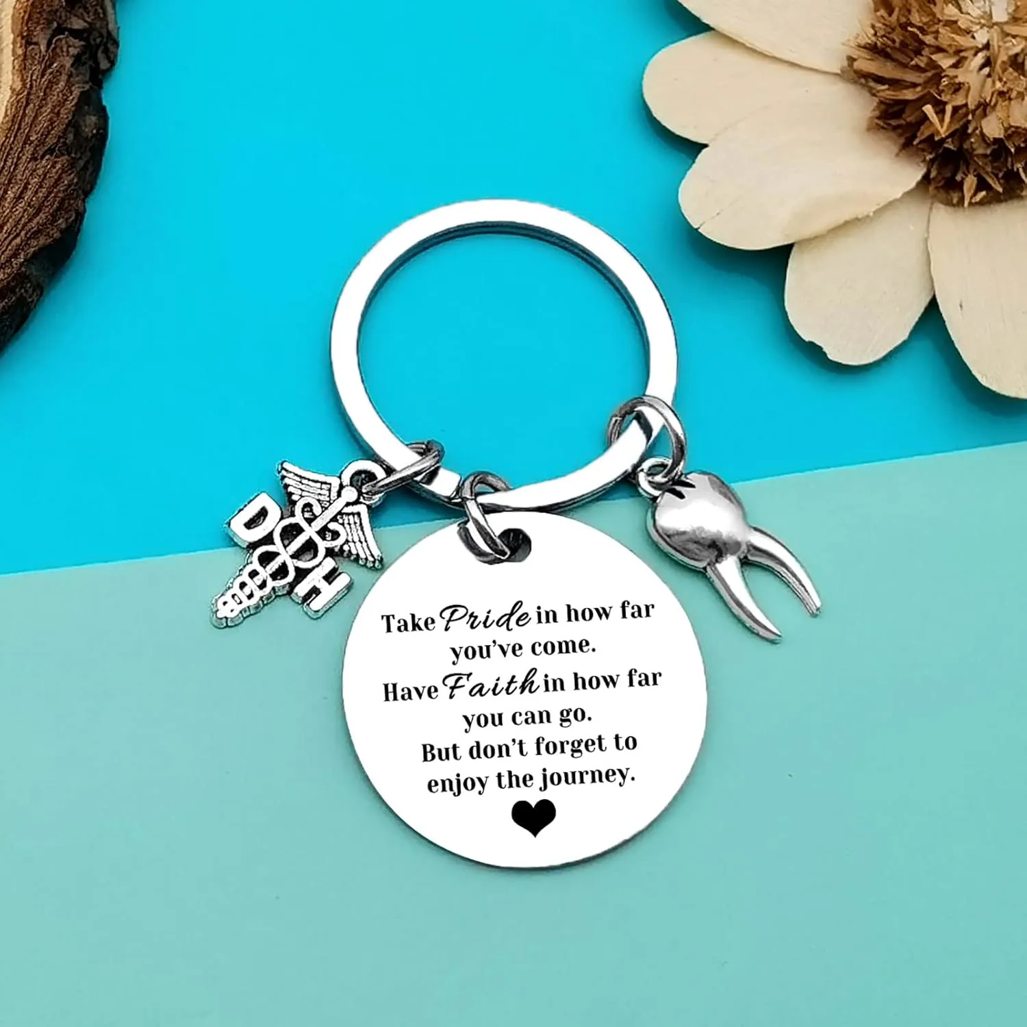 Looking for the perfect inspirational gift for a dental hygienist, dentist, or dental student? This beautifully crafted keychain is an ideal choice! Featuring the uplifting message: “Take pride in how far you’ve come. Have faith in how far you can go. But don’t forget to enjoy the journey”, it serves as a constant reminder of their dedication and hard work. This makes it a thoughtful present for dental school students embarking on their career, experienced professionals in dental practices, or anyone passionate about oral healthcare. Whether it’s a dentist graduation gift, a token of appreciation for a dental assistant, or a special present for an orthodontist, this keychain is sure to be cherished. Suitable for future dental hygienists, dental professors, dental graduates, and all dental office staff. It’s a versatile gift option perfect for graduations, birthdays, anniversaries, Christmas, Thanksgiving, Valentine’s Day, New Year celebrations, or simply to show your appreciation. Made from durable stainless steel, this keychain is designed to last, symbolizing the enduring value of their profession. Each keychain comes with a free velvet pouch, making it ready for gifting and ensuring a memorable presentation. Give the gift of encouragement and inspiration with this timeless dental profession keepsake. This is more than just a keychain; it’s a daily reminder of their value and impact on the lives of others, celebrating their commitment to oral health. It is hypoallergenic and will not tarnish. A Perfect graduation and birthday gift for Dental Hygienist, dentist, dental assistant, dental technician for birthday or just because.