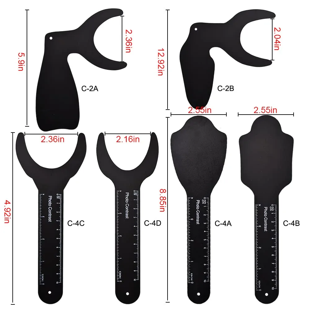 Capture crystal-clear dental images with our Dental Photography Contraster Kit! This comprehensive set provides the perfect black background to highlight teeth and eliminate distracting elements, allowing for precise and professional intraoral photography. Crafted from high-quality stainless steel, these photographic contrast devices are designed to minimize patient discomfort during shoots. The special black background board assists in accurately adjusting the camera’s white balance, ensuring true-to-life color representation in your dental photos. Polished smooth edges guarantee patient safety by preventing scratches or irritation in the mouth. The kit includes 6 different models (C-2A, C-2B, C-4A, C-4B, C-4C, C-4D) to accommodate various oral areas and photographic needs. Our dental photo background board kit is incredibly convenient and easy to use. Each contraster can withstand autoclave sterilization up to 134°C, allowing for repeated disinfection and ensuring optimal hygiene between patients. Achieve professional-quality dental photography with enhanced contrast and clarity, making your images ideal for diagnosis, treatment planning, and patient education. Improve your dental practice’s image quality and efficiency with this essential tool. Perfect for dentists, orthodontists, and dental professionals seeking to improve their photographic documentation.