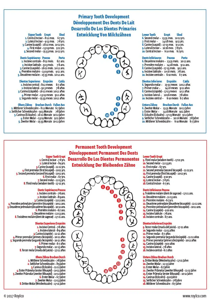 • Shows primary and permanent teeth