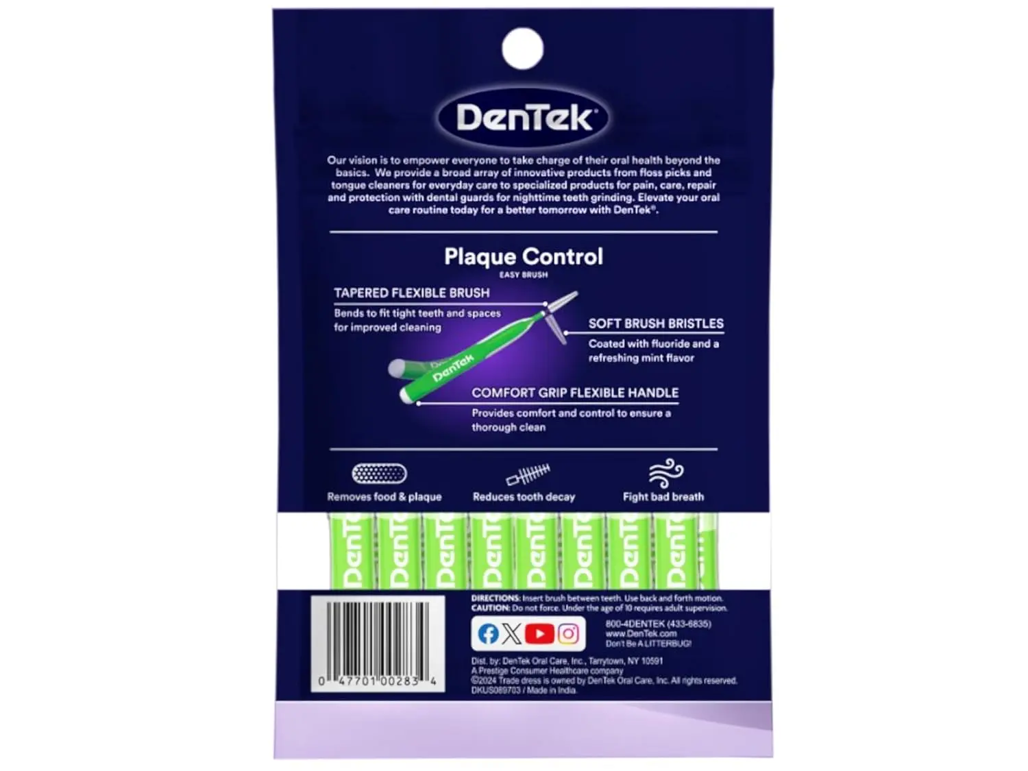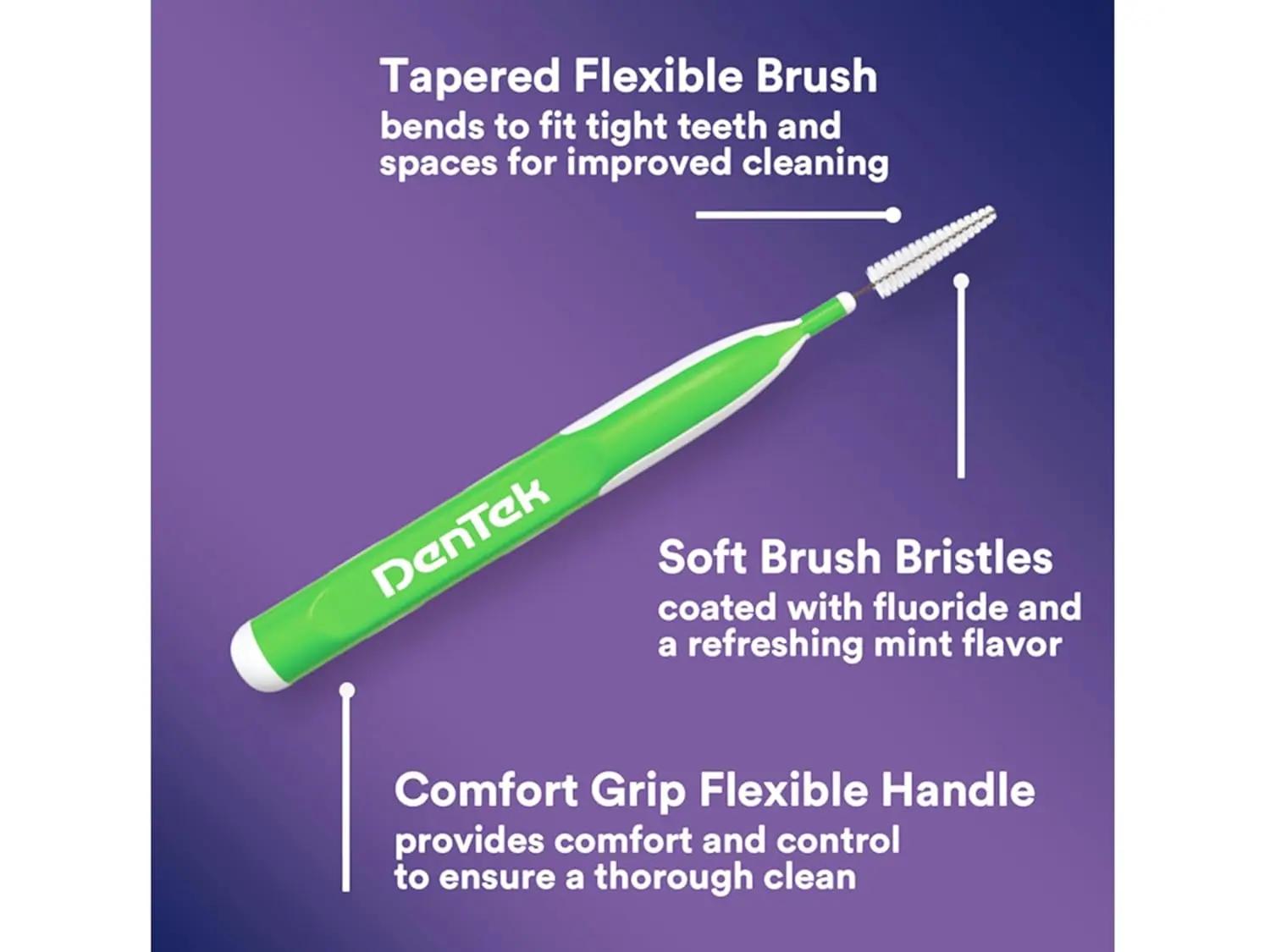 Maintain a healthy and confident smile with DenTek Easy Brush Extra Tight interdental brushes. This 6-pack of meticulously designed brushes is your ideal solution for cleaning those hard-to-reach spaces between your teeth. Specifically crafted for extra tight spaces (2.0-3.0mm), these brushes gently yet effectively remove plaque and food particles, promoting optimal oral hygiene and preventing gum disease. The tapered design allows for easy insertion and maneuvering, fitting comfortably between most teeth, even with braces. Each brush features a flexible handle that provides superior control and precision, making it easier to clean every corner of your mouth. Regular use of DenTek Easy Brush Extra Tight helps prevent cavities, reduces bad breath, and contributes to overall dental health. Experience the difference of a truly clean mouth with these innovative interdental brushes. They are a must-have addition to your daily oral care routine, ensuring a fresh and healthy smile. The compact and portable design makes them perfect for on-the-go use, allowing you to maintain your oral hygiene wherever you are. With DenTek Easy Brush Extra Tight, you can achieve a dentist-clean feeling every day. These brushes are designed with your comfort and effectiveness in mind, providing a superior interdental cleaning experience. Upgrade your oral care routine today and enjoy the benefits of a healthier, brighter smile.