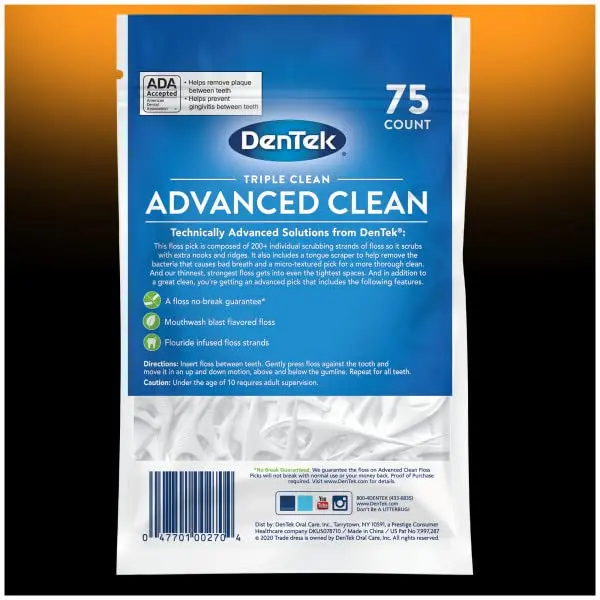 Achieve a brighter, healthier smile with DenTek Triple Clean Floss Picks. These innovative floss picks are designed to make flossing quick, easy, and effective. With 75 picks per pack, you’ll have a convenient supply for maintaining optimal oral hygiene. The textured pick helps to keep your teeth clean and healthy. Experience the difference of a truly clean mouth with DenTek Triple Clean Floss Picks. The floss is gentle on gums but strong enough to remove plaque and food particles from even the tightest spaces between teeth. The unique design of the pick allows for easy maneuvering and access to all areas of the mouth, including hard-to-reach back teeth. Make flossing a part of your daily routine and enjoy the confidence of a fresh, clean smile. These picks are perfect for on-the-go use, whether you’re traveling, at work, or simply need a quick touch-up after a meal.