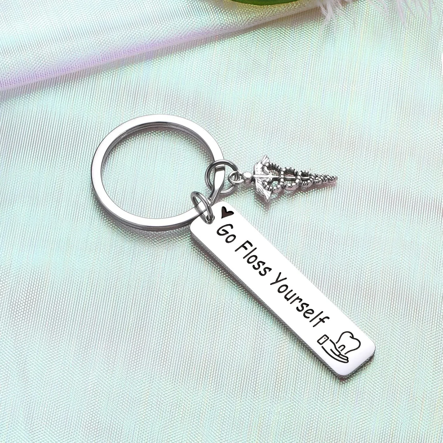 Show your appreciation for the dental professional in your life with the ZQEOU “Go Floss Yourself” keychain. This high-quality keychain is the perfect gift for dentists, dental students, dental assistants, or anyone passionate about oral hygiene. Crafted from durable stainless steel, this keychain is built to last. It’s lead and nickel-free, ensuring it won’t rust, tarnish, or fade, even with daily use. The sturdy construction makes it ideal for carrying keys, attaching to bags, or simply as a decorative accessory. This keychain makes a thoughtful and practical gift for Thanksgiving, Christmas, Valentine’s Day, birthdays, or any special occasion. It’s a perfect way to show your support and love to your friends, sisters, brothers, family members, or significant other who are involved in the dental field. The “Go Floss Yourself” message adds a touch of humor and serves as a reminder of the importance of dental care. The keychain arrives in a beautiful velvet pouch, making it ready for gift-giving. No need to worry about wrapping! It’s a convenient and charming present that shows you care. At ZQEOU, we are committed to providing high-quality products and excellent customer service. If you have any questions or concerns, please don’t hesitate to contact us. Your satisfaction is our top priority, and we’re dedicated to providing you with the best possible experience. This keychain is more than just a trinket; it’s a symbol of support, encouragement, and a gentle nudge to maintain good oral hygiene. Give the gift of a smile with the ZQEOU “Go Floss Yourself” keychain!