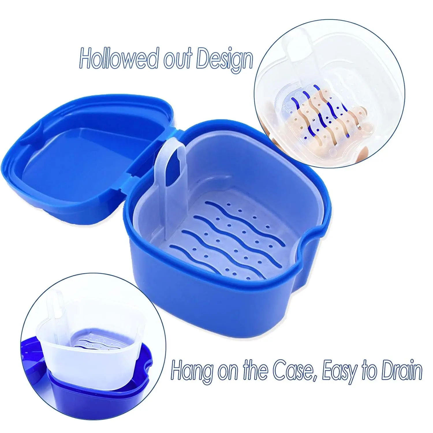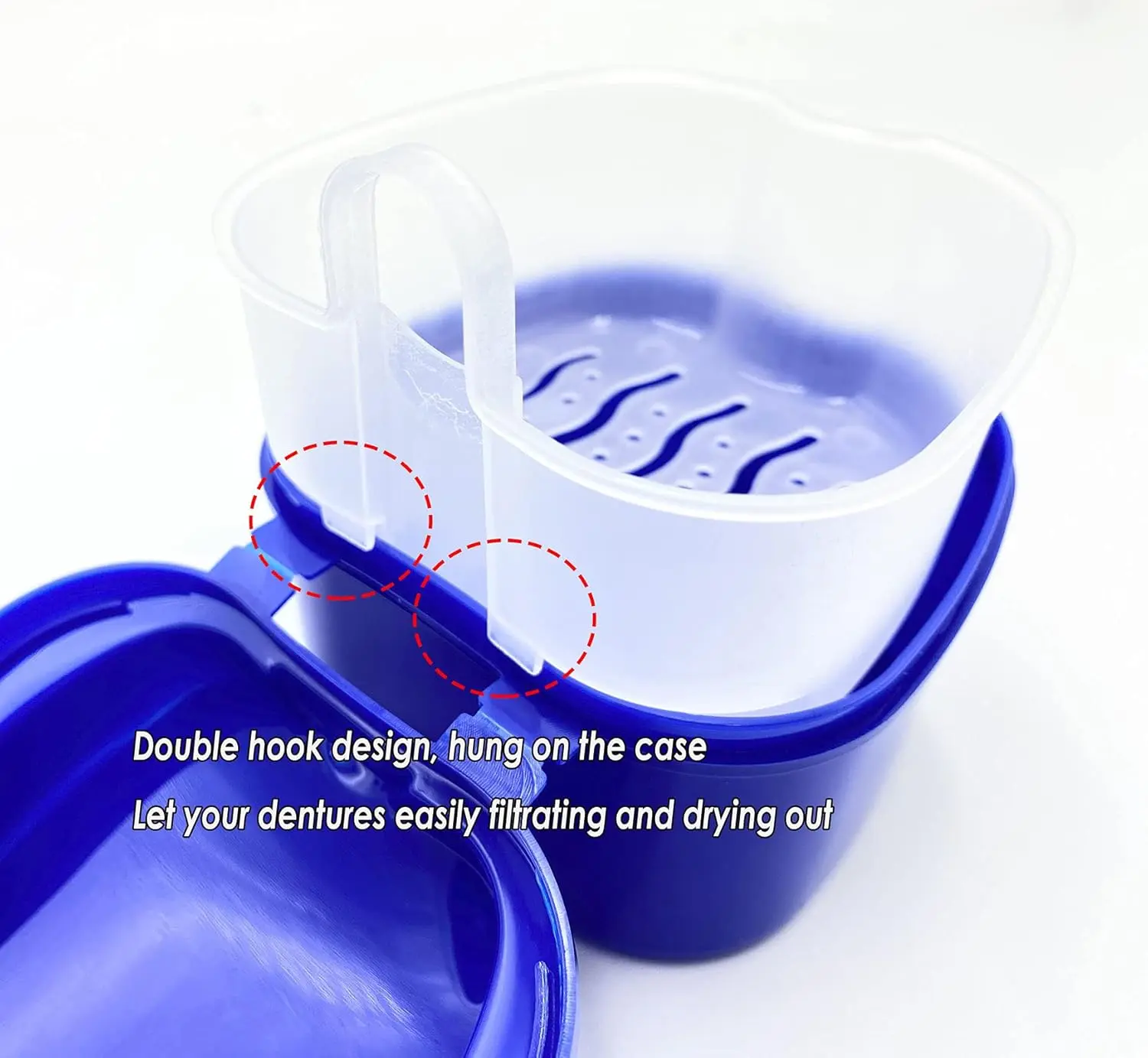 The denture bath cases feature a humanized design, incorporating a basket with hooks that allows for easy filtration and drying of your dentures. This prevents the buildup of moisture and bacteria, keeping your dentures sanitary and ready for use. The handle on the tray insert enables you to remove your dentures without getting your hands wet, adding an extra layer of hygiene and convenience to your daily routine.