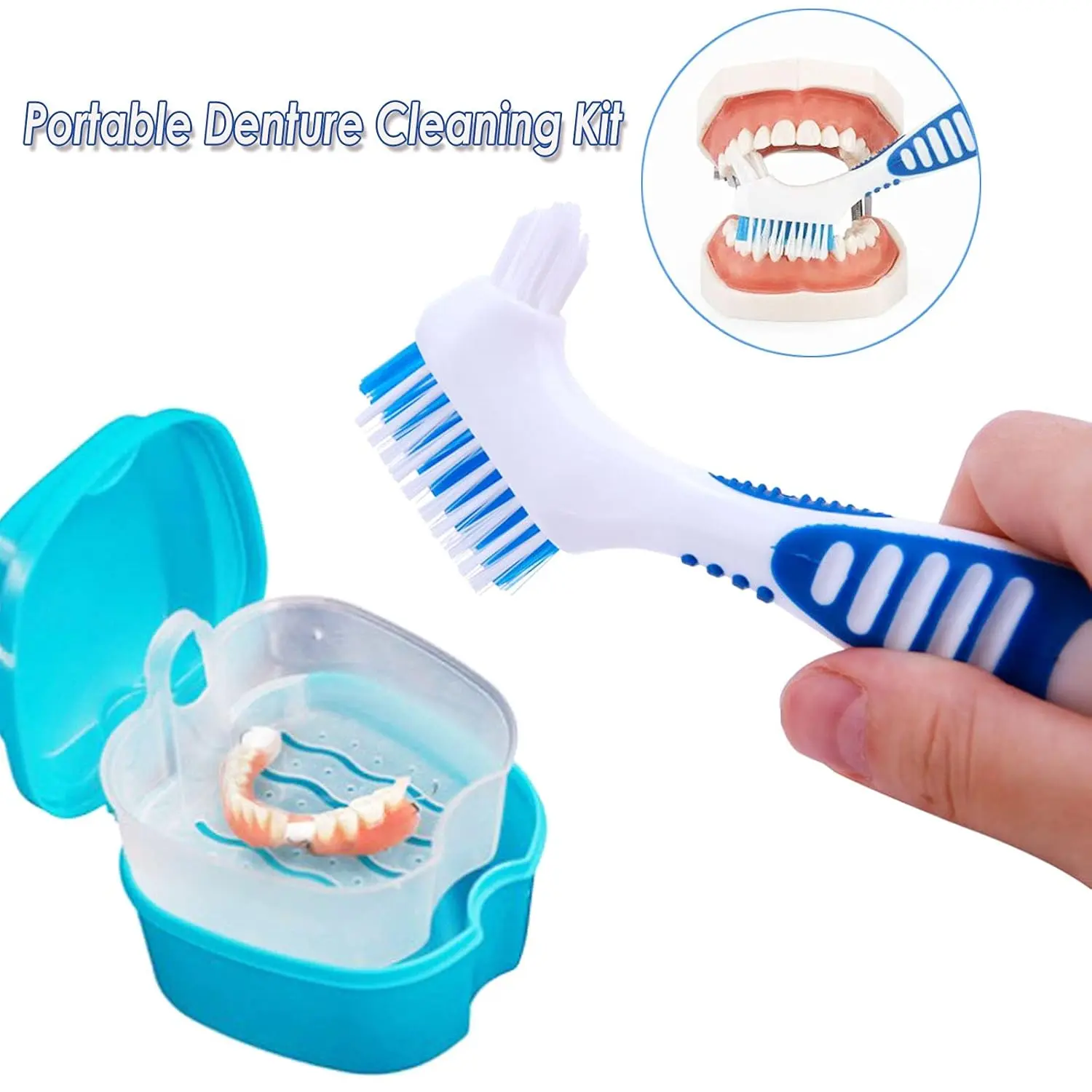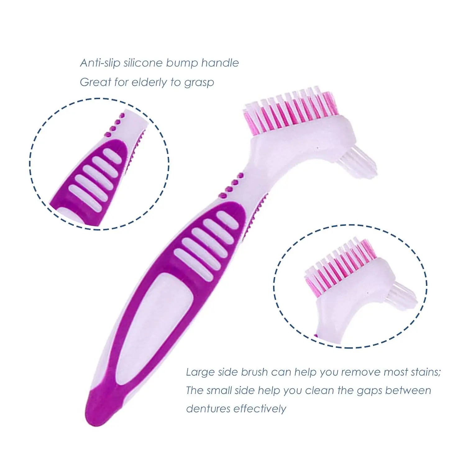 • Double-headed denture cleaning brush with moderate soft bristles, perfect for cleaning dentures without damage.