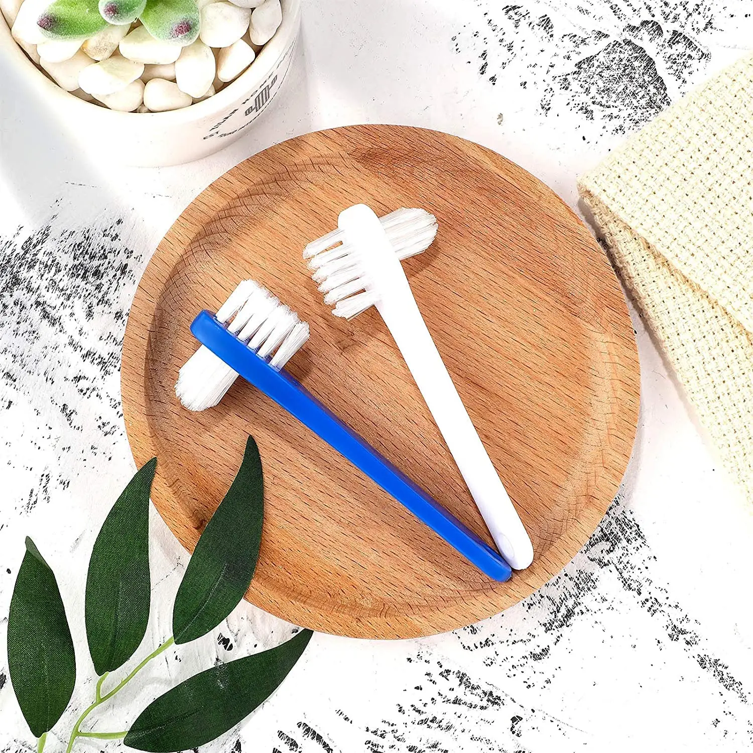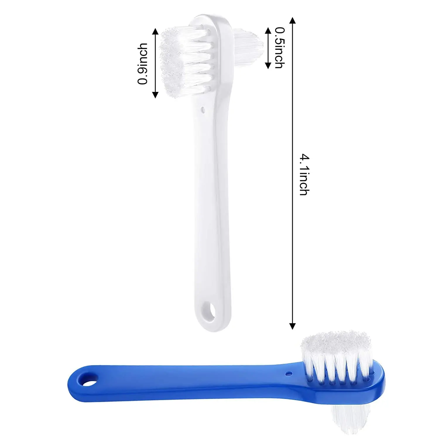 Maintain a sparkling clean smile with our Denture Brush Dual Head Toothbrush set! This pack includes 6 dual-head toothbrushes, perfect for daily denture cleaning and long-term use. The blue and white colors offer a simple and classic aesthetic, making them ideal for sharing with family and friends. Unlike ordinary toothbrushes, our denture cleaner brush features a PP handle and multi-layered medium bristles, boasting two brush heads for enhanced dental cleaning efficiency. Say goodbye to brushing torture! Our design swiftly removes film from denture surfaces, providing an effortless user experience. Crafted with a quality PP handle and soft nylon bristles, these hard denture cleaning brushes are gentle yet effective. They won’t harm your dentures and are washable for lasting durability. The convenient size provides a firm grip, allowing easy access to most parts of your dentures. Keep your false teeth shiny and clean after every meal with this time-saving tool. Incorporate our denture toothbrush into your morning routine and experience complete denture surface cleaning. Protect your dental health with effective and efficient dental care. This set also makes a thoughtful gift for your grandparents! Enjoy the confidence of a cleaner, fresher mouth with our Denture Brush Dual Head Toothbrush set. The unique dual-head design ensures no area is missed, providing a thorough clean that promotes better oral hygiene. The ergonomic handle offers comfort and control, making the brushing process easier and more effective. Don’t settle for ordinary toothbrushes – upgrade to our specialized denture cleaning solution and experience the difference! Each brush is meticulously crafted to provide optimal cleaning power while remaining gentle on your dentures. With our set of 6, you’ll always have a fresh brush ready to use, ensuring consistent cleanliness and hygiene. Make denture care a breeze with our Denture Brush Dual Head Toothbrush set.