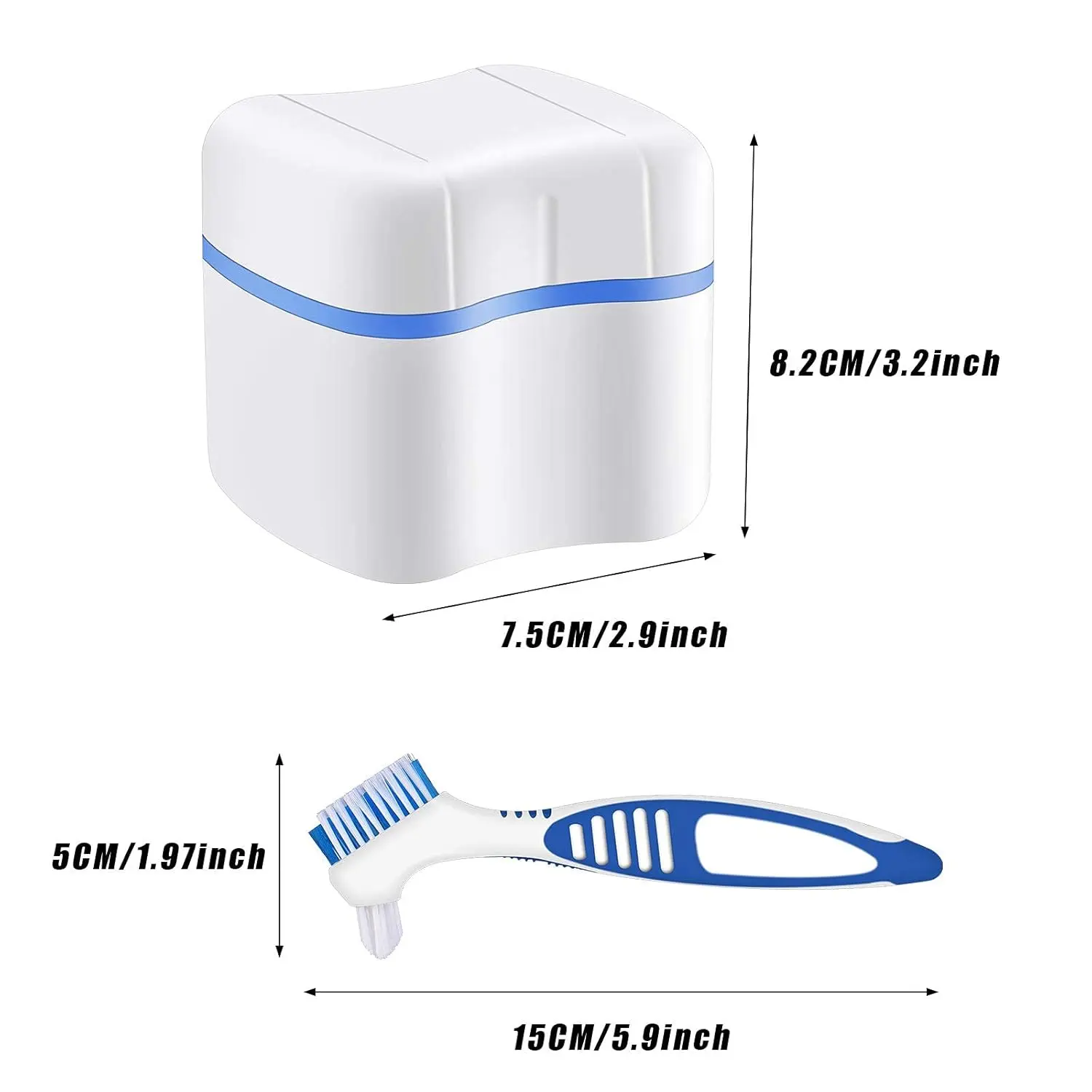 • Complete Denture Care Kit: Includes 2 denture cups, 2 denture cleaning brushes, providing a full solution for cleaning and storage.